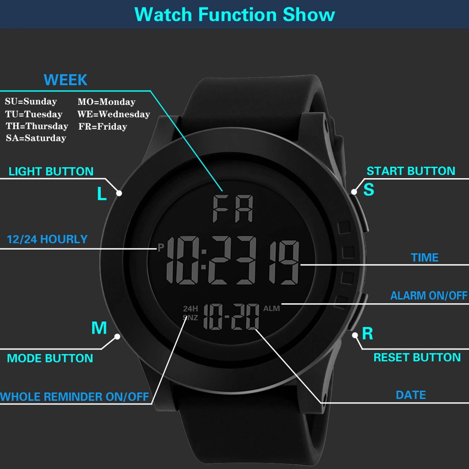 HONHX Mens LED Digital Display Watch Date Sport Women Outdoor Electronic Watch