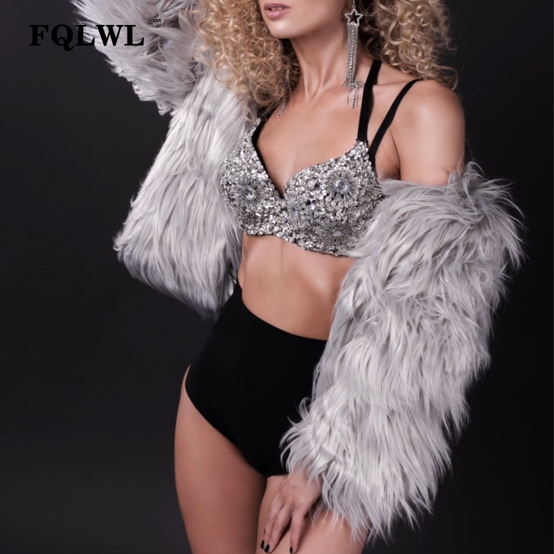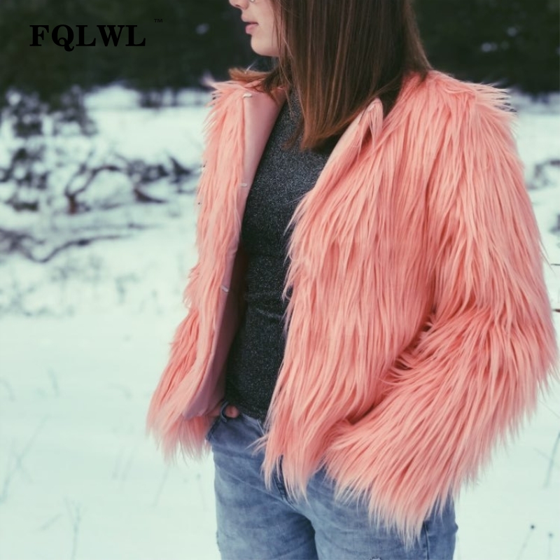 FQLWL Warm Faux Fur Coat Women Jacket Plus Size Black White Pink Plush Overcoat Female Colorful Winter Autumn Shaggy Outerwear