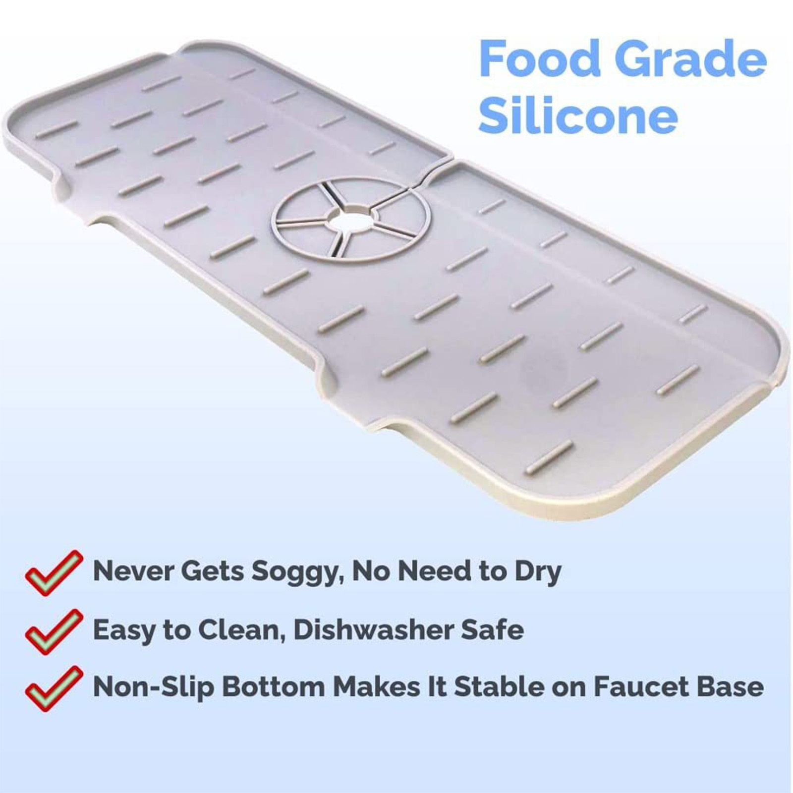 The sink mat is made of silicone, which is soft and reliable, won't scratch your dishes, the material absorbs water quickly, keeping your kitchen countertop clean and dry for more convenience.