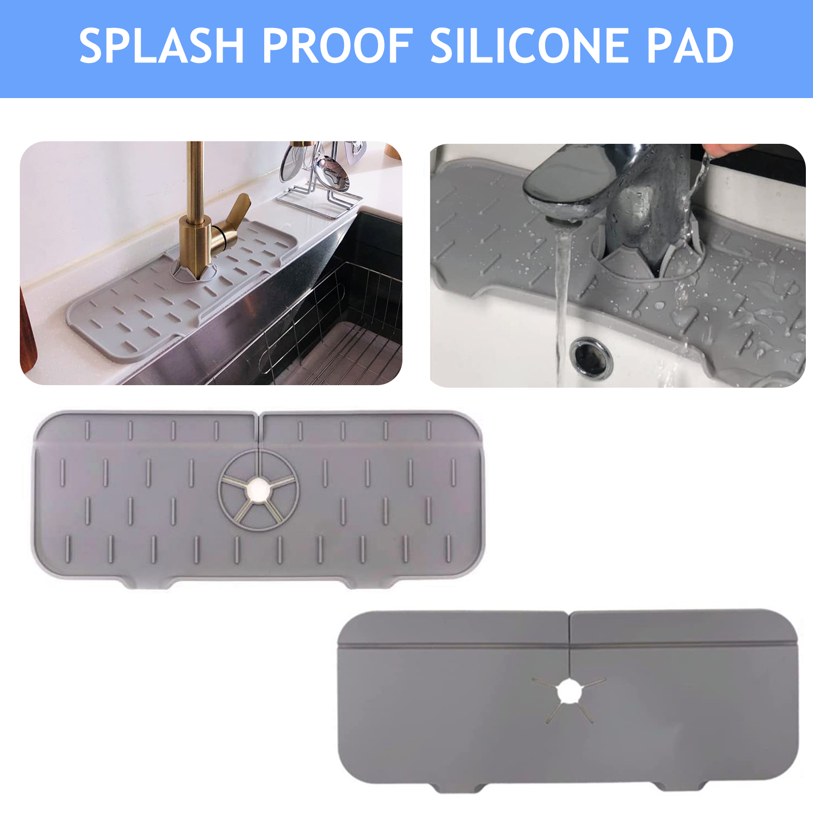 Faucet Sink Splash Catcher Washable Silicone Backsplash Guard Drying Mat Faucet Drip Kitchen Bathroom Counter Sink Splash Guard