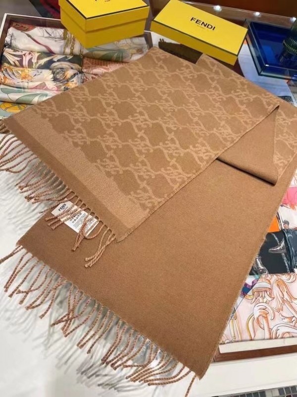 The perfect accessory for cold weather, the refined Karl scarf is crafted from wool and cashmere. It is adorned with aa contrasting jacquard FF Karligraphy motif and the other is in a plain color. Long tonal fringe details complete its timeless and romantic design.