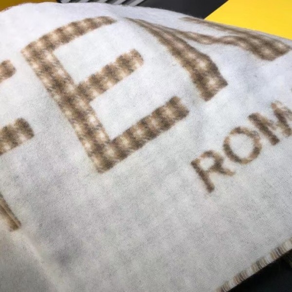 This timelessly elegant and luxurious Fendi scarf in soft wool and cashmere with Fendi Roma oversized lettering, lined with checked motif. Fringed hem, Its long, narrow shape enables it to be worn in many different ways.