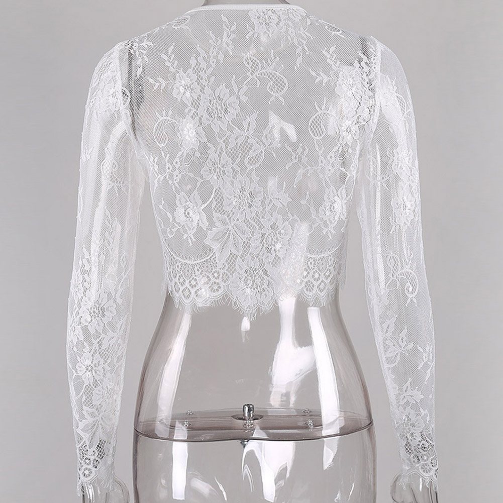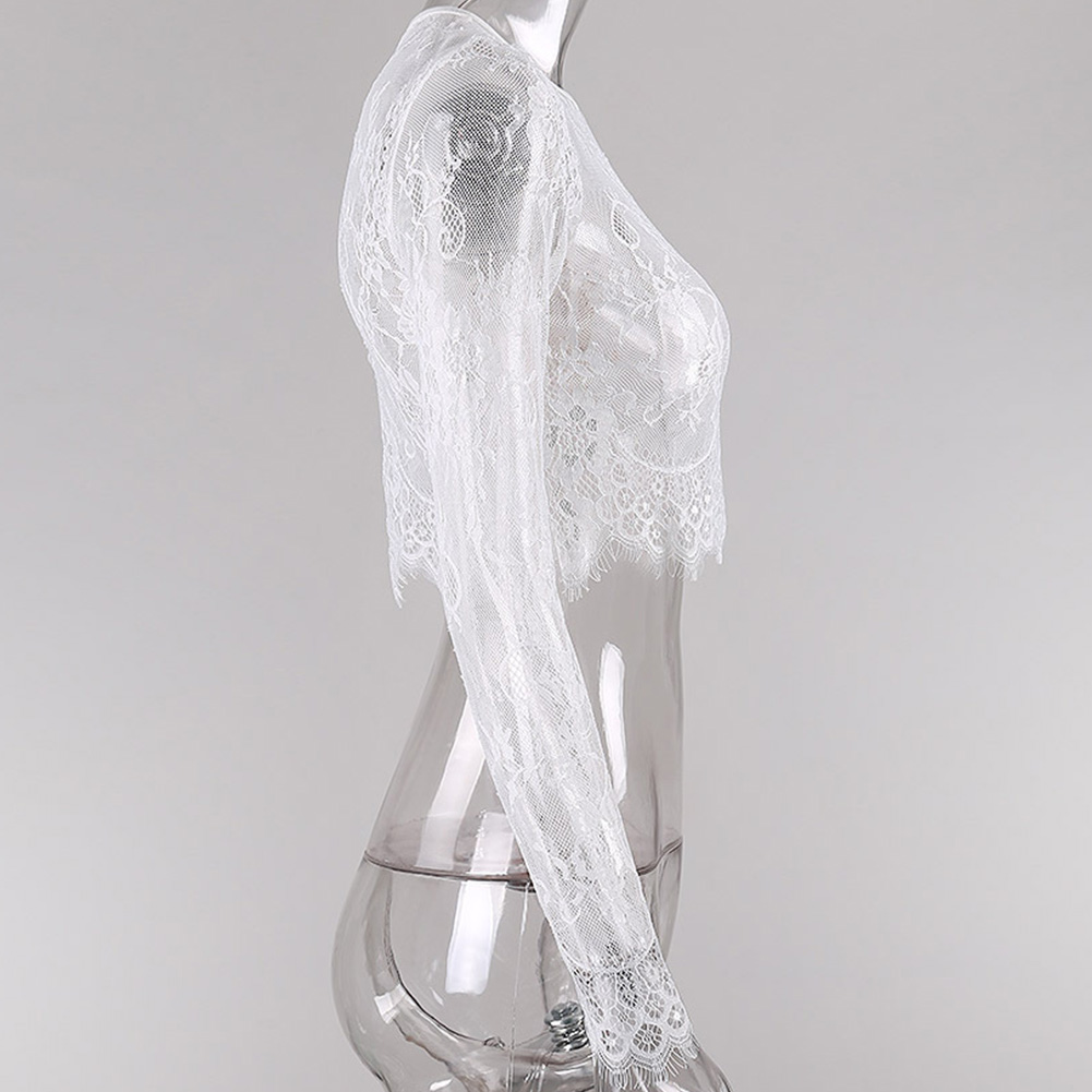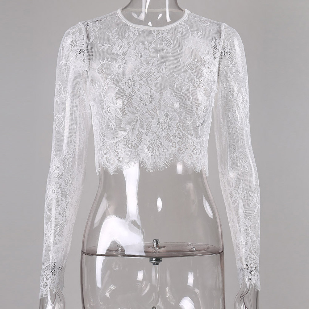 Woman Summer Mesh Long-sleeved Slim-fit Perspective Navel Sexy Style Lace Top