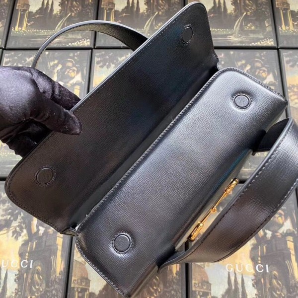 The top handle Boston bag is introduced within the Gucci Horsebit 1955 collection for Pre-Fall 2020 in calfskin leather. Inspired by archival designs, the line unifies the original details first introduced over six decades ago with a modern spirit, highlighting the Horsebit. Part of Gucci’s genetic code, the double ring and bar design has been established as one of the most distinctive elements among the House symbols borrowed from the equestrian world.