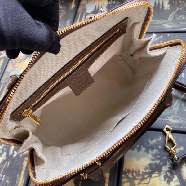 A new silhouette introduced to the Gucci 1955 Horsebit line for Spring Summer 2020, the top handle has a domed shape with an optional leather shoulder strap, crafted from GG Supreme canvas and leather. The collection unifies details first introduced on the original bag that inspired the line from over six decades ago with a modern spirit, highlighting the Horsebit. Part of Gucci’s genetic code, the double ring and bar design has been established as one of the most distinctive elements among the House symbols borrowed from the equestrian world.