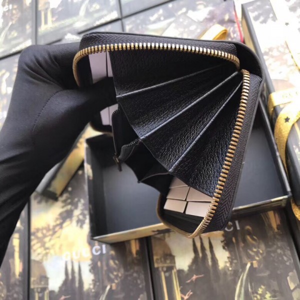 Gucci Animalier Zip Around Wallet In Black Leather