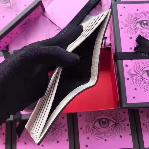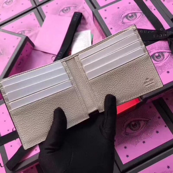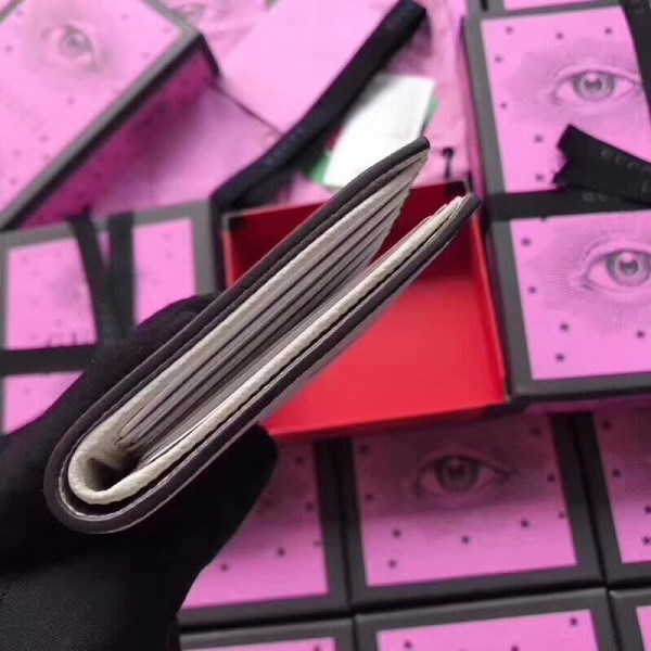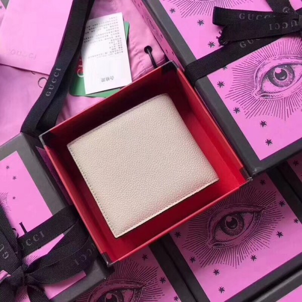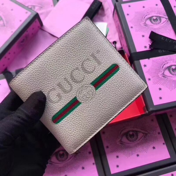 Inspired by vintage prints from the eighties, the Gucci logo is brought to the forefront. The retro-style motif is presented on the front of a bi-fold wallet in supple, textured leather.