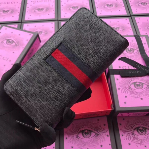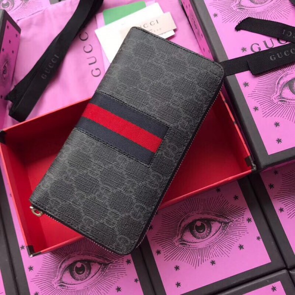 This black Gucci Web GG Supreme zip-around wallet wallet is the result of Italian design. Crafted with a canvas exterior, this accesssory features the signature GG logo print, contrasting red band detail, internal zippered compartment and multiple internal leather card slots. We must admit we find note-only wallets frustrating at times. And we’re certainly over the weight-down chain-in-pocket look (no thanks). Thankfully, this Gucci Supreme wallet solves both those issues. Happy days.