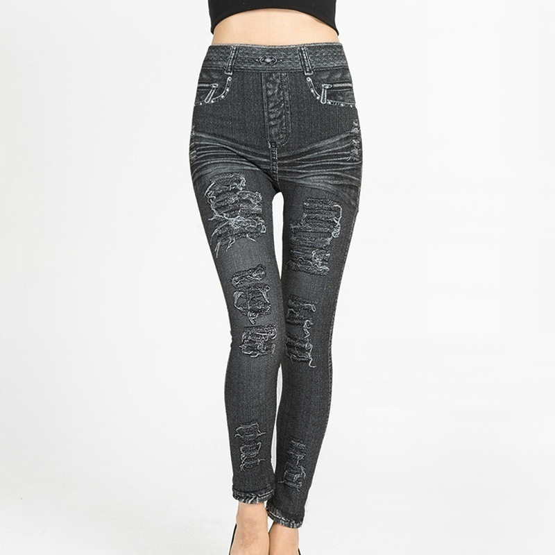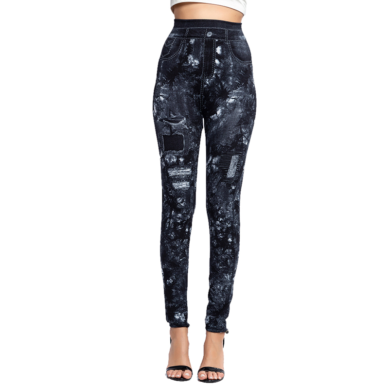 High Waist Faux Jean Leggings Slim Elastic Seamless Plus Size Skinny Pencil Pants Female Pocket Workout Running Leggings .