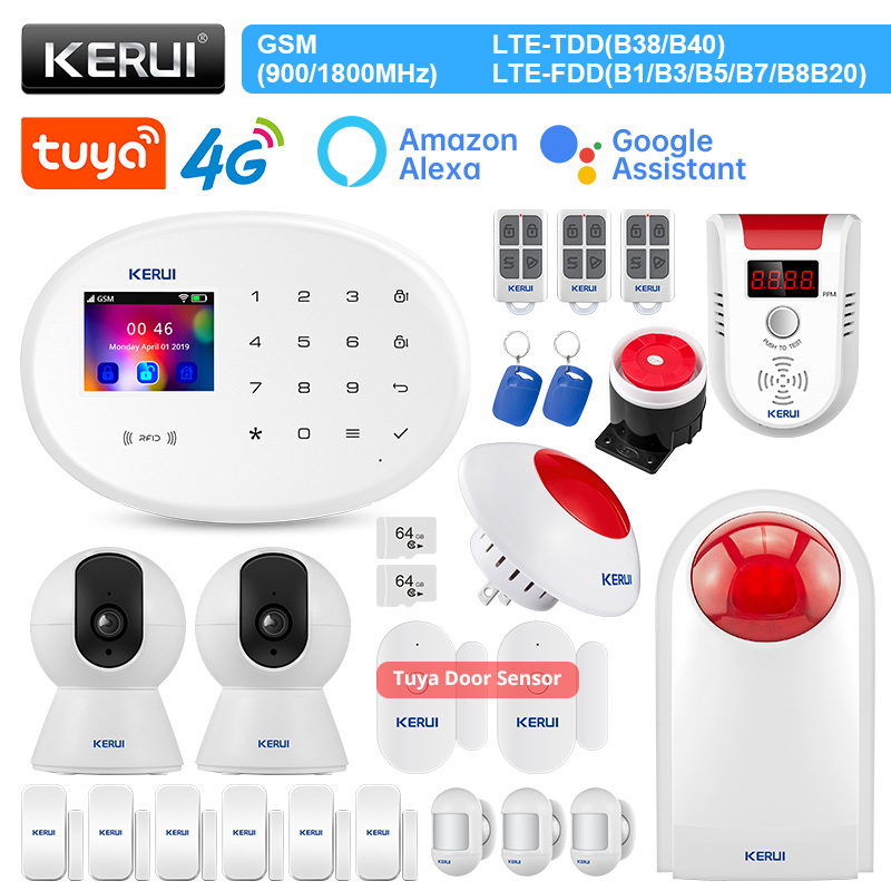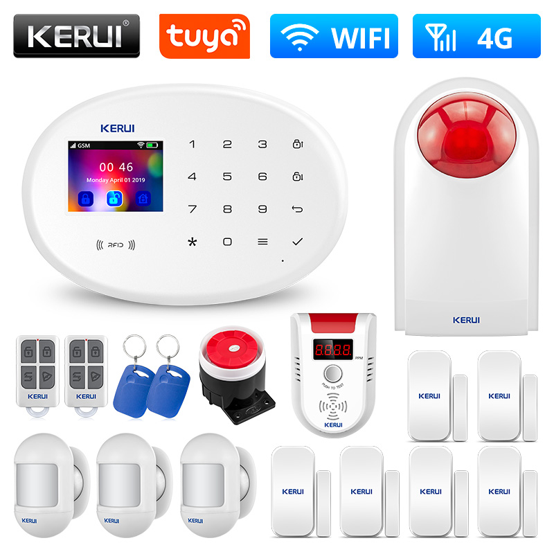 KERUI W204 4G WIFI GSM Tuya Smart Home Security Alarm System 2.4 Inch TFT Touch Panel APP Control Burglar Smoke Detector