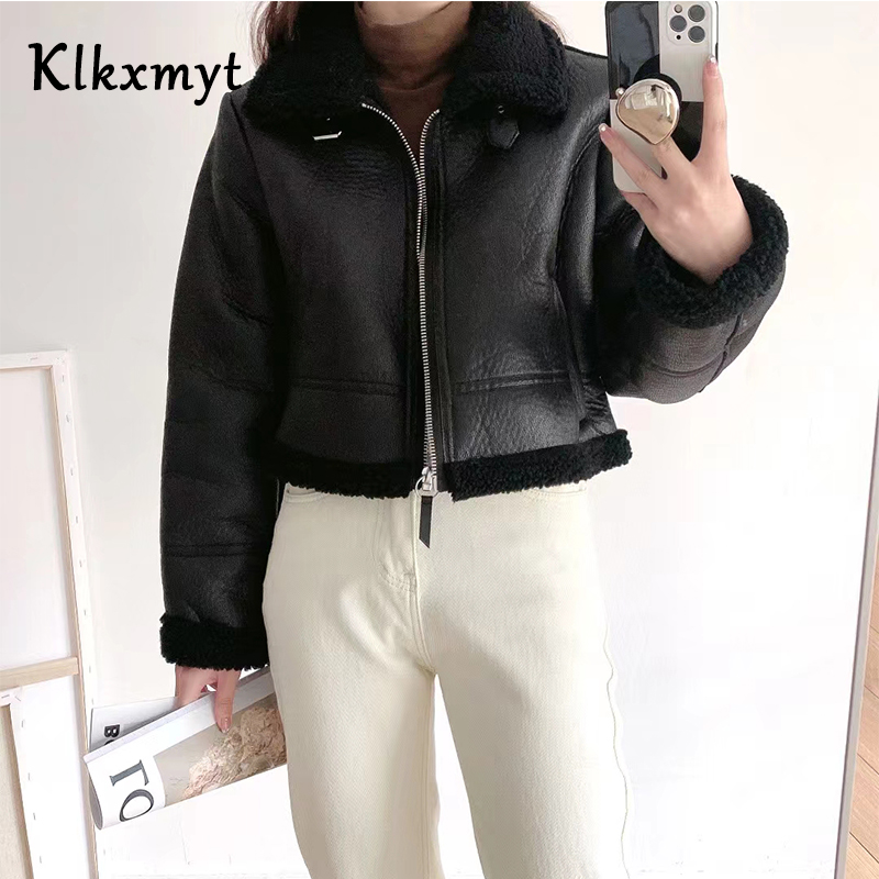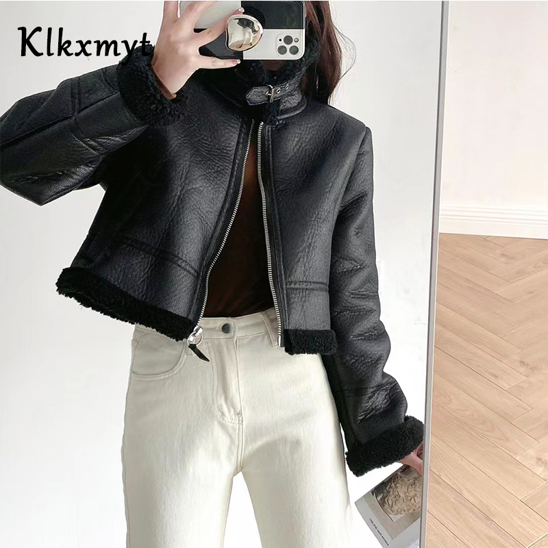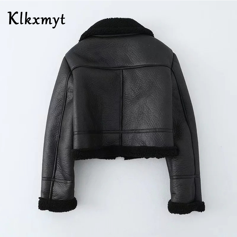 Klkxmyt Traf Women Faux Leather Fur Jacket Winter Warm Coat Street Comfortable Personalized Female Outwear Tops