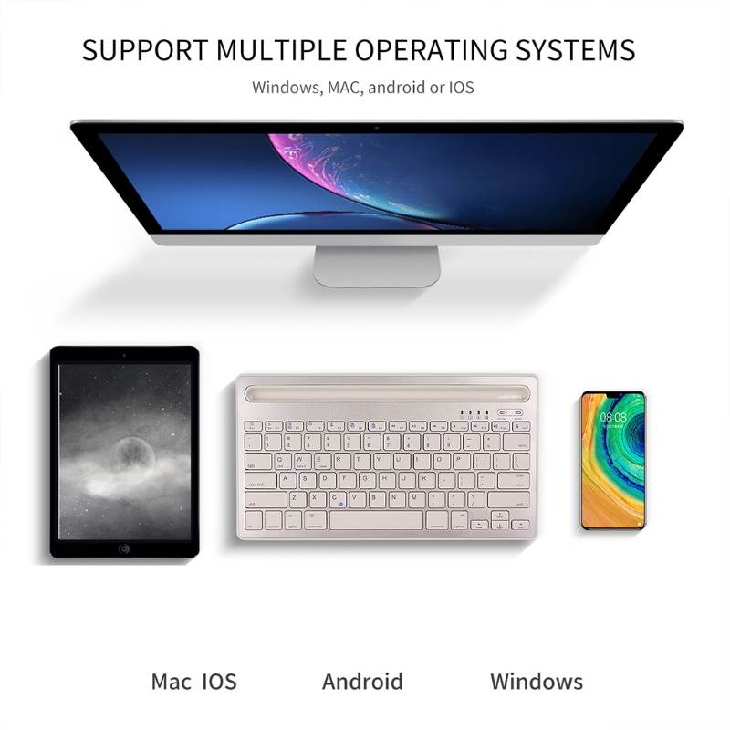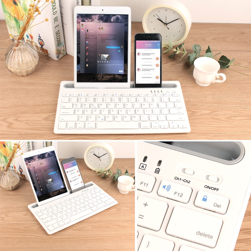 Typing on your phone/tablet like a professional: Typing on a tablet or phone is painful? Now enjoy the experience of typing on a computer on a tablet and phone. Whether it's office work, writing emails, sending messages or even writing your outdated novels, use this multi-device keyboard to do it on your phone/tablet. With a sturdy base design, the phone and tablet can be put together, and the convenient angle provides a comfortable typing experience.