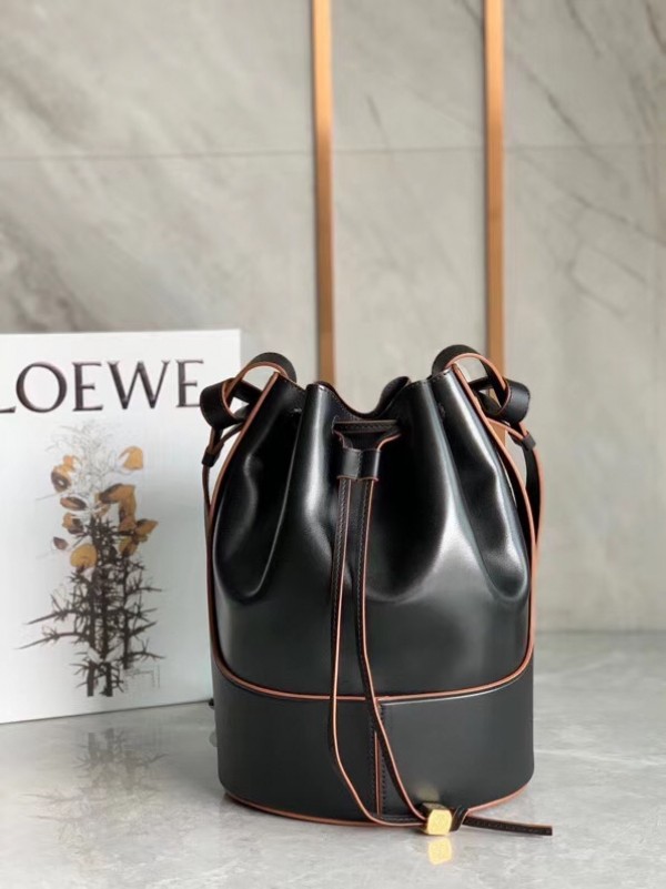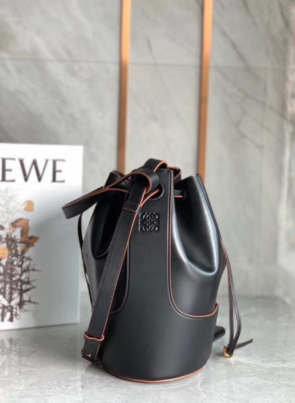 Loewe Medium Balloon Bucket Bag In Black Calfskin
