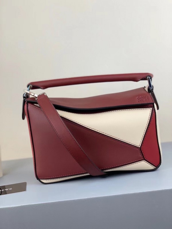 Loewe’s ‘Puzzle’ bag has become one of the label’s most iconic styles and coveted for its versatility – it can be transformed from a tote to a clutch, or worn cross-body. Immaculately made from panels of bordeaux, garnet and white leather, this structured piece has a spacious interior fitted with pouch pockets for your cell phone, wallet and keys. Adjust the optional strap to your preferred length.