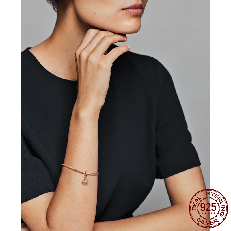 MULA Real 925 Sterling Silver Rose Gold Series Glittering Elegant Silicon Charm Bead Fit Original Pandora Bracelet Wome