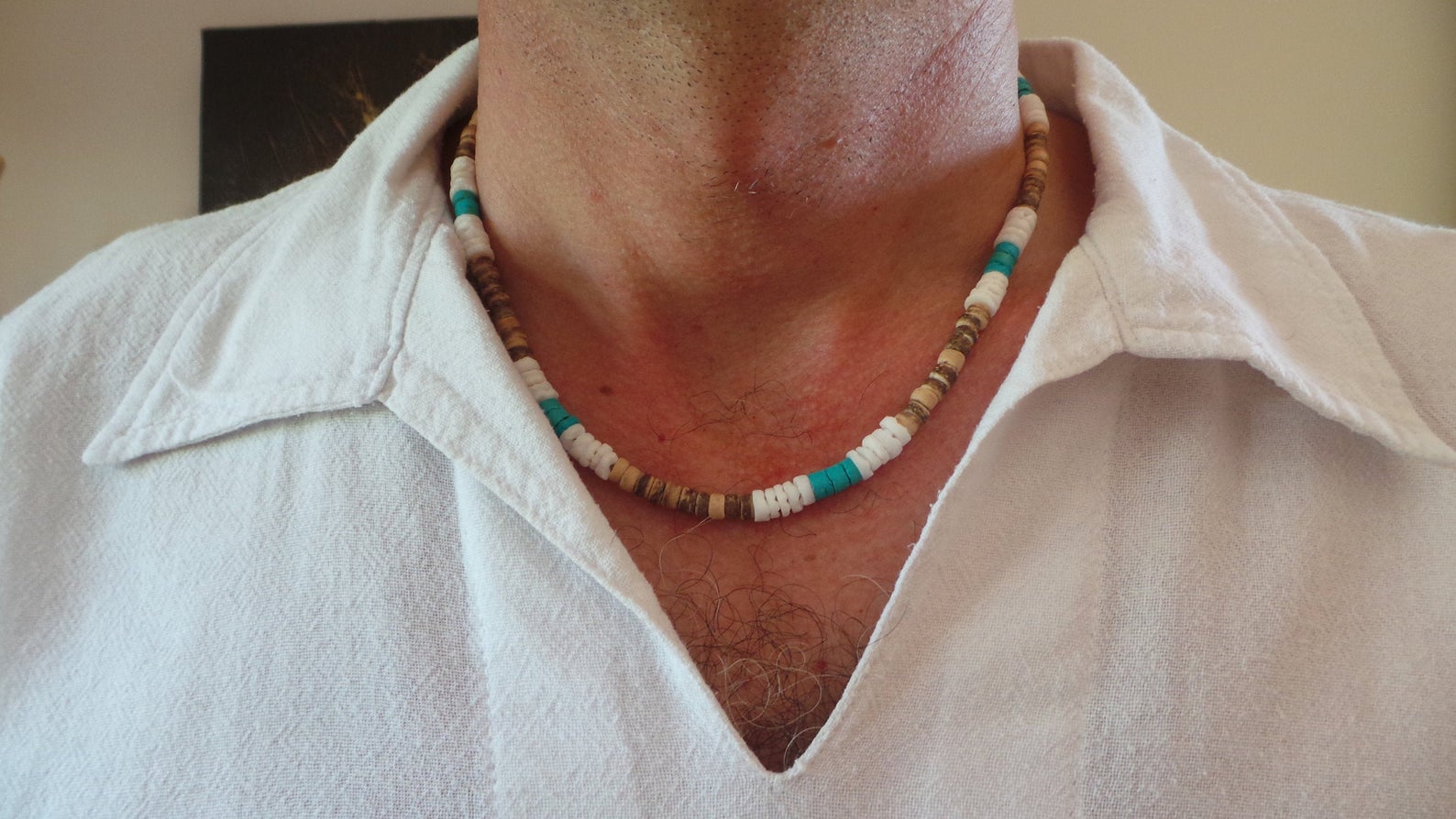 Men's African necklace, Men african Beaded jewelry, Surfer necklace Gifts for men, Wooden Beach Necklace