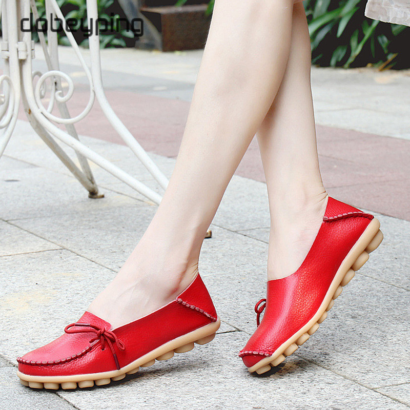 dobeyping New Spring Autumn Shoes Woman Genuine Leather Women Flats Slip On Women Loafers Moccasins Female Shoe Plus Size 35-44