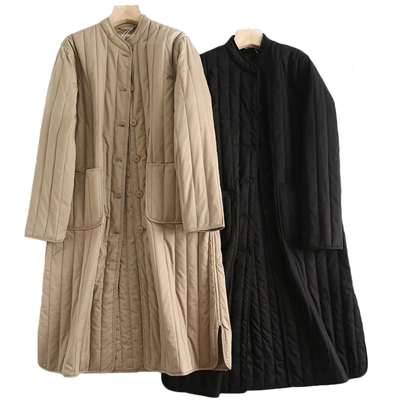 OneBling Women Casual Traf Quilted Coats Winter Warm Thick Striped Padded Jacket Pockets Mid Length Loose Long Parkas