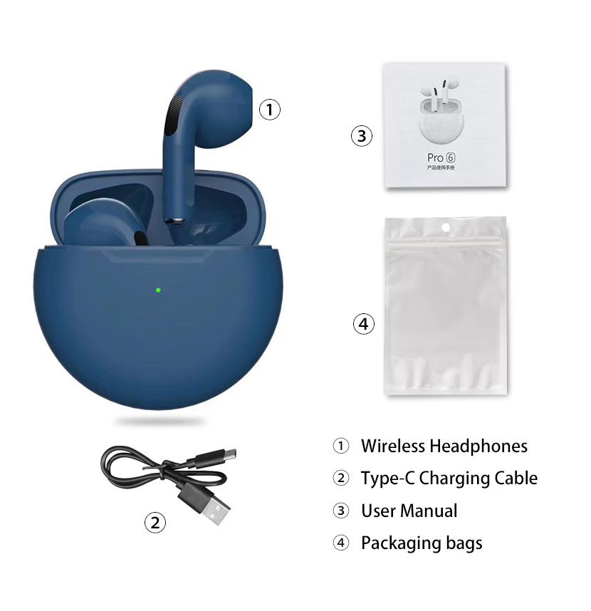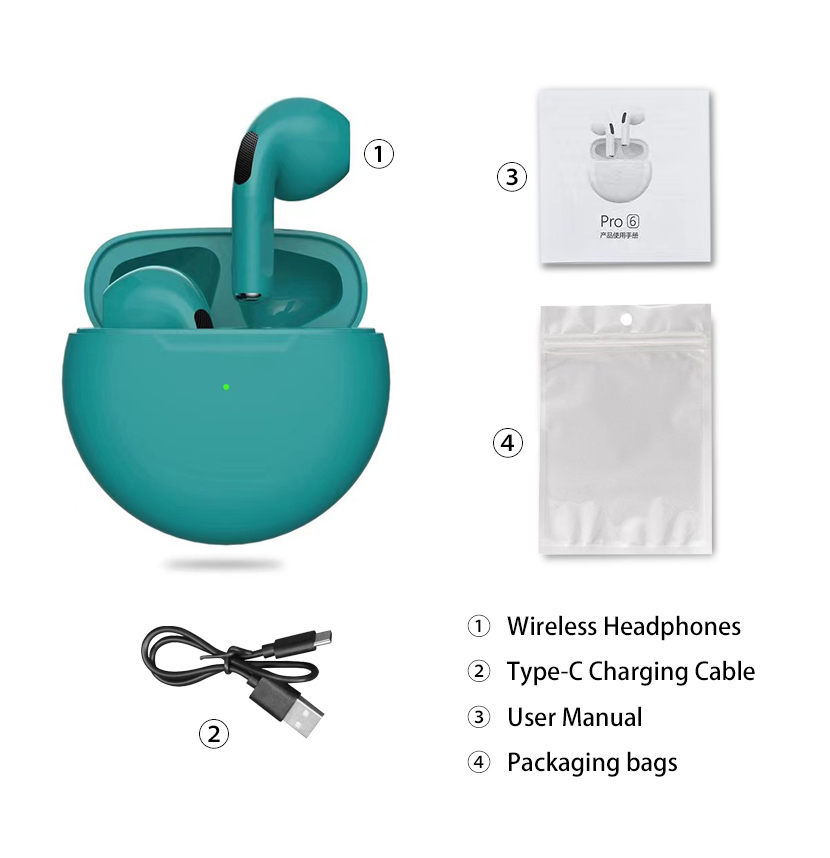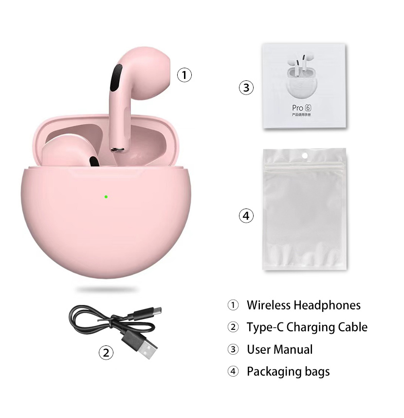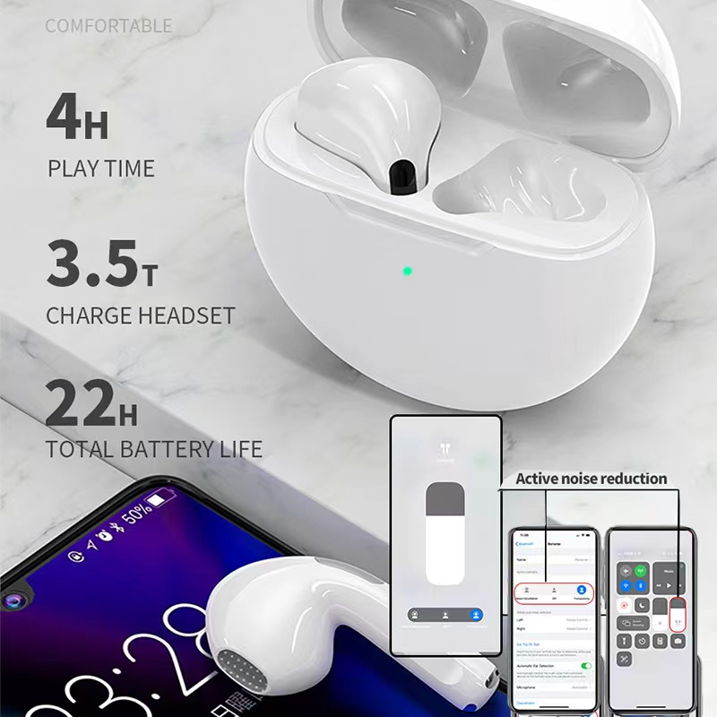 2022 Original Pro6 TWS Headsets For Iphone Xiaomi Phones Bluetooth 5.1 Touch Control Wireless Earphones Sport Earbuds Music Headphone