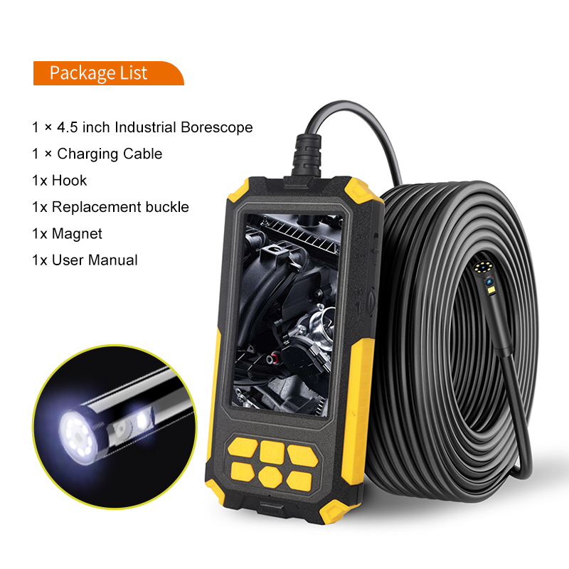 5. [ Built-in 2600mAh Rechargeable Battery ] : it can work continuously for up to 3-4 hours depend on different situations. Package Include: 1x Industrial Endoscope , User manual,1x USB Charging Cable, 1x Set accessories (include a hook, magnet, protective cap).