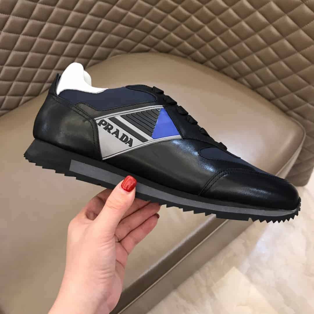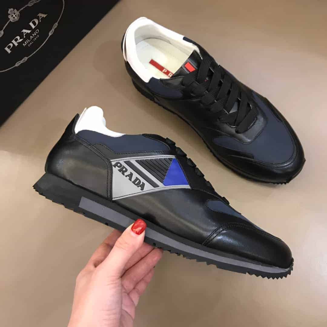 PRADA MACRO RE-NYLON AND BRUSHED LEATHER SNEAKERS – PD023