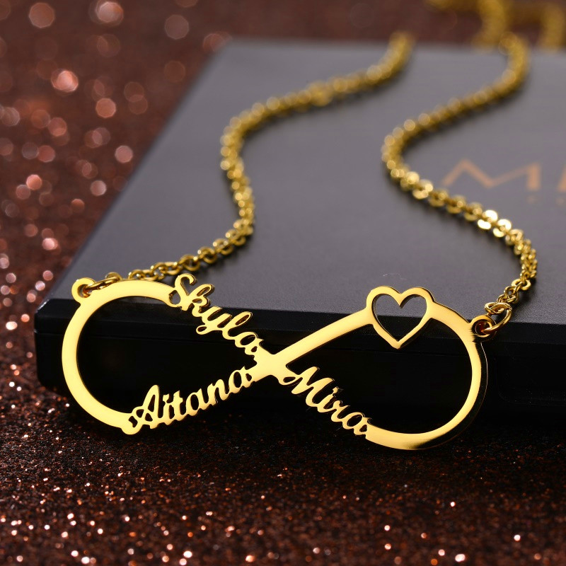 Personalized Pendant Name Necklace Infinity Women Men Gold Stainless Steel Chain Custom Couple Nameplate with Heart Jewelry Gift