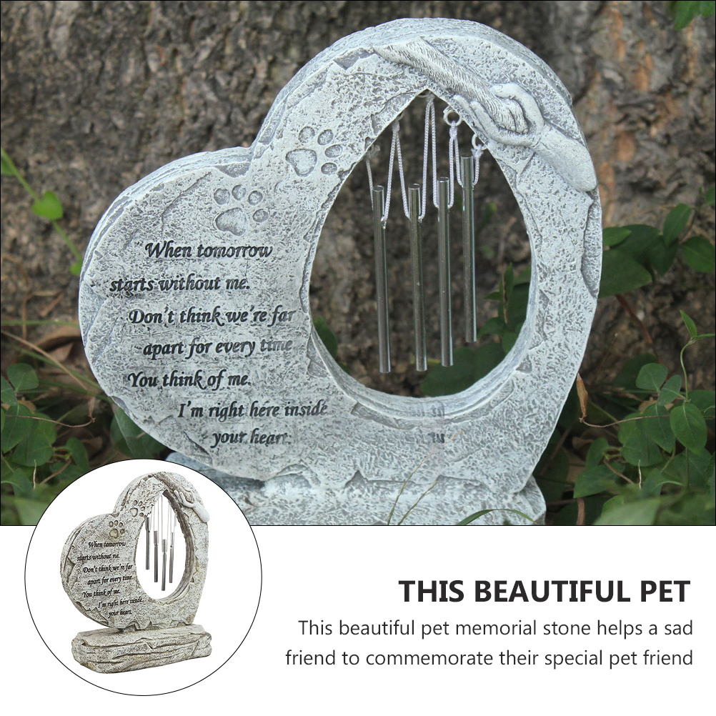 Pet Dog Cat Memorial Stone Grave Tombstone With Wind Chimes Embellishment Memorial Stone Tombstone With Wind Chimes Pet Supplies