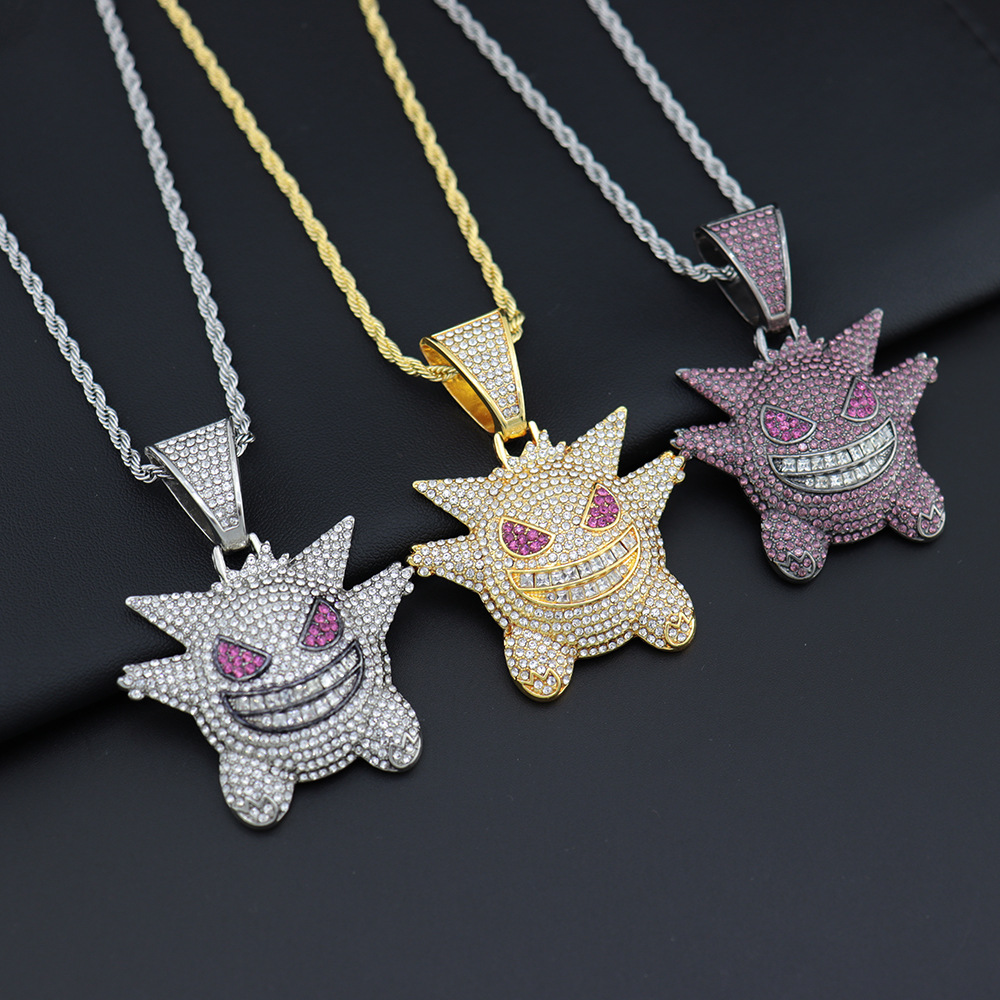 Punk Style Pokemon Anime Gengar Figures Funny Necklace Pendant Hip-hop Jewelry Boy Girls Necklace Pikachu Accessories Kid Gifts