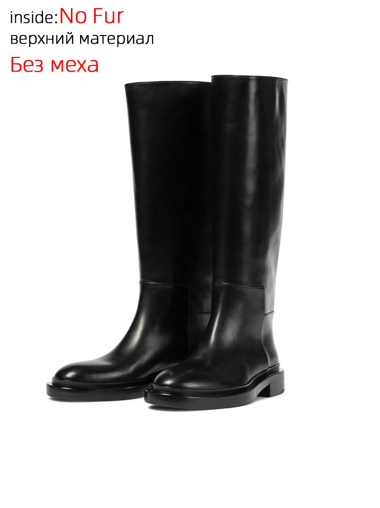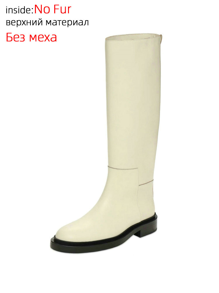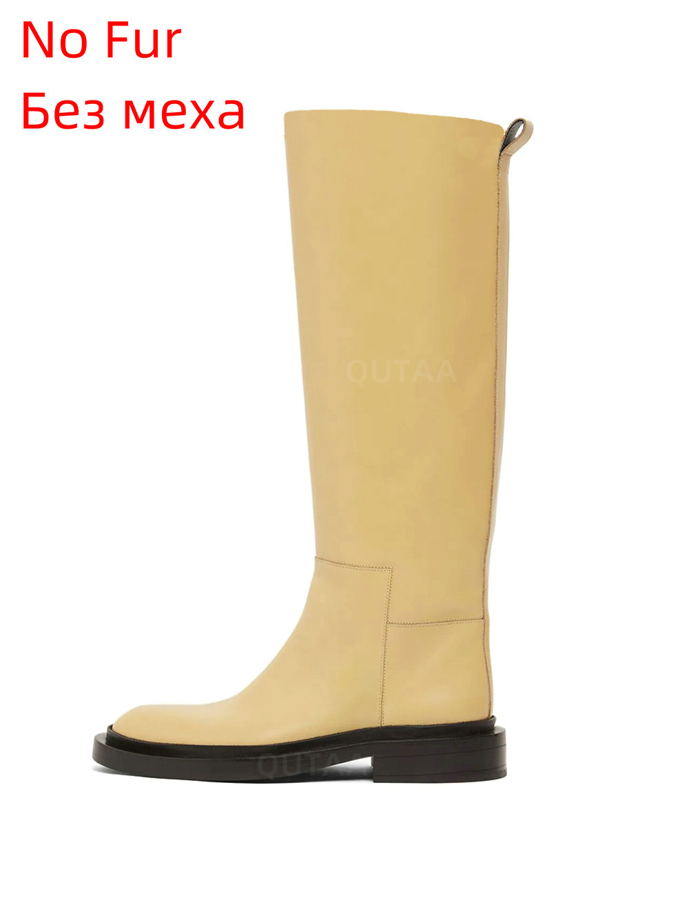 QUTAA 2023 Ins Women Knee high Boots Square Heels Motorcycle Warm Long Boots Genuine Leather Casual Shoes 34-42