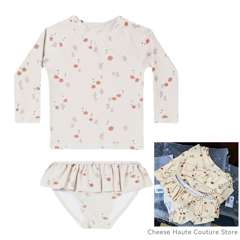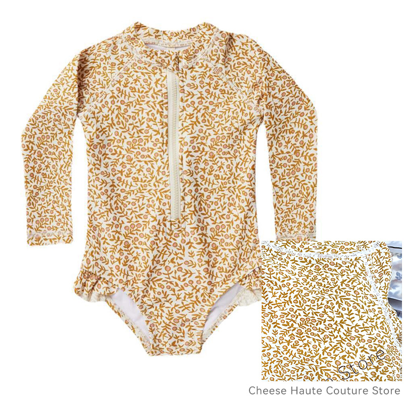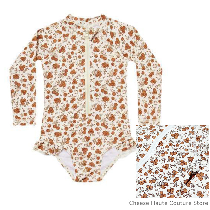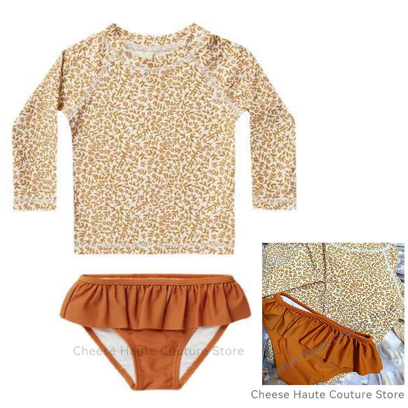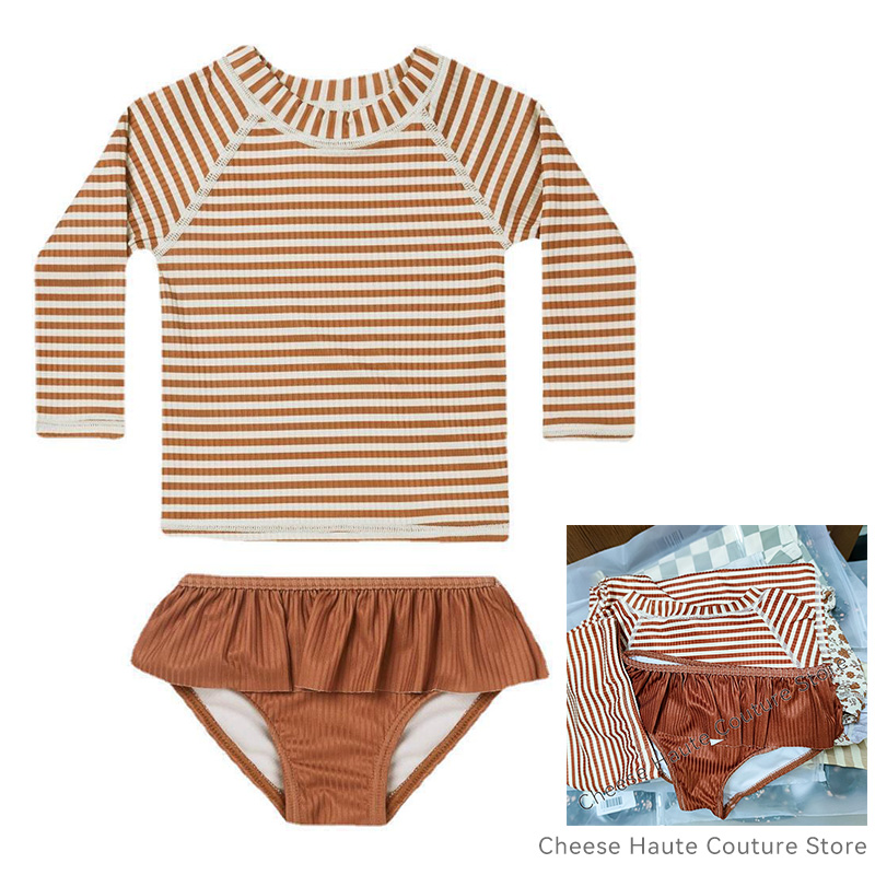RC Baby Girls Swimwears 1-12y Kids Long Sleeve Sunscreen Floral Toddler Swimming Swimsuit Striped Bikini Suits