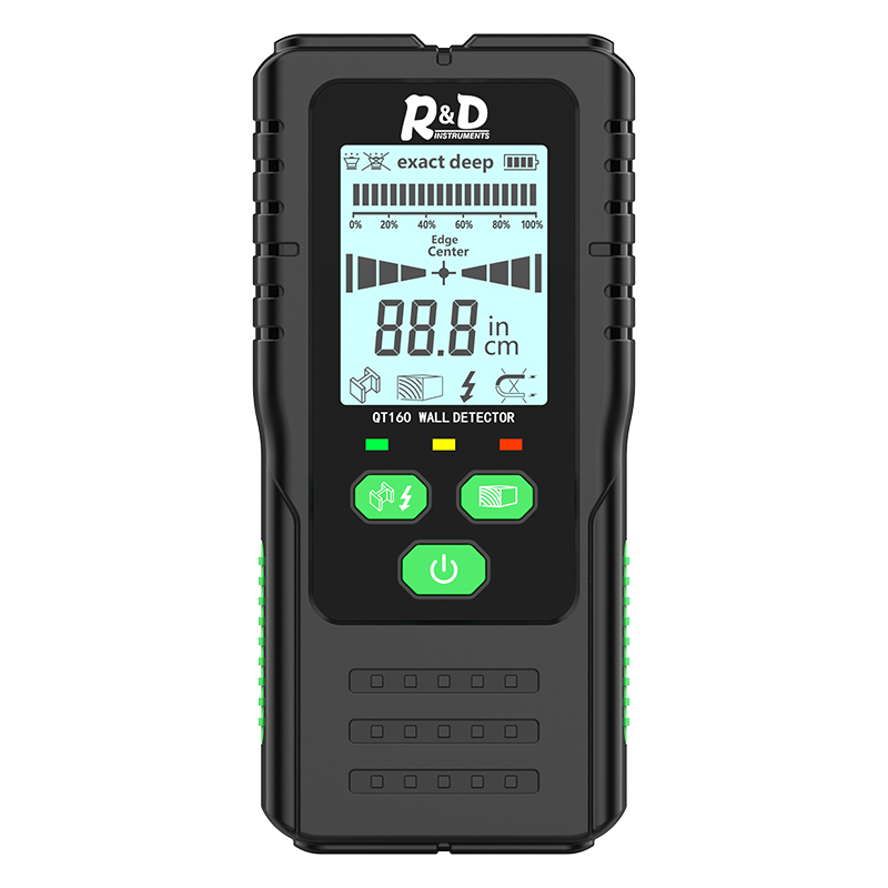 R&D QT160 Wall Metal Detector Backlit Black AC Wood Finder Cable Wires Depth Tracker Undeground Sturs Wall Scanner LCD Display
