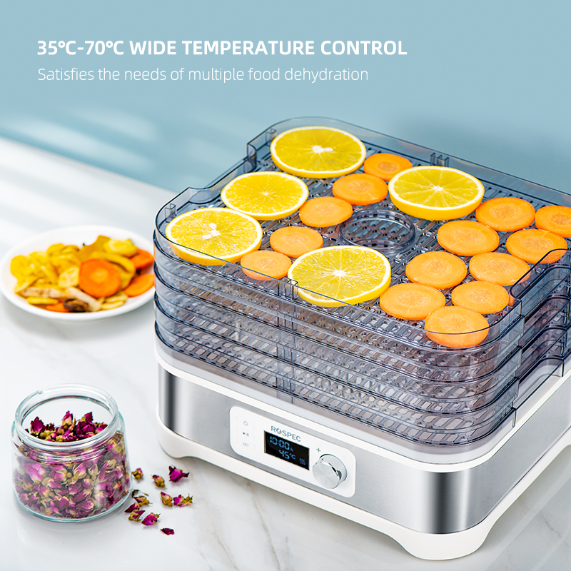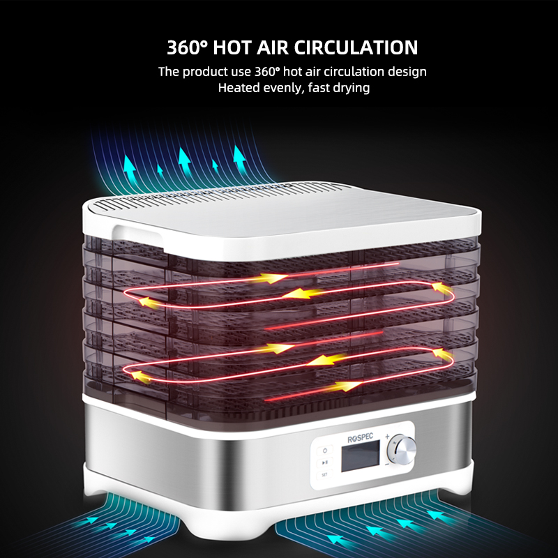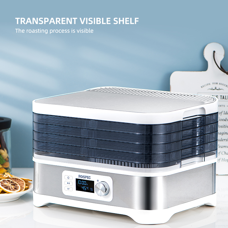 ROSPEC BPA FREE 5 Trays Food Processor Food Dehydrator Stainless Steel Drying Fruit Machine Electric Air Dryer Drying Meat