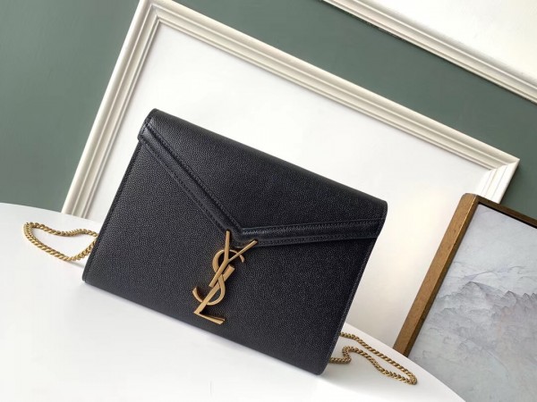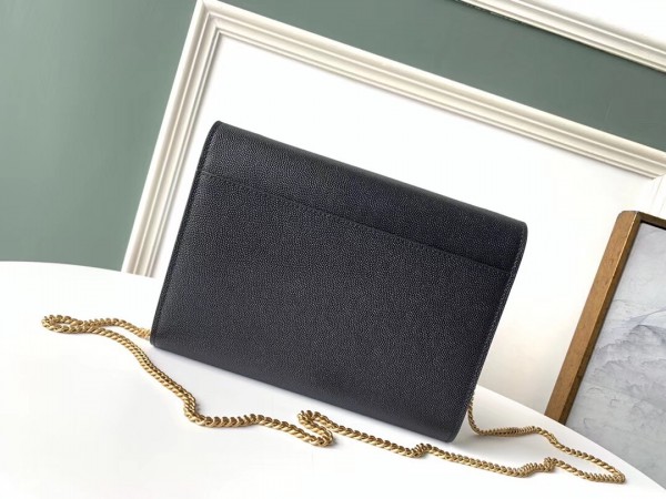 Saint Laurent WOC Cassandra Chain Wallet In Black Leather