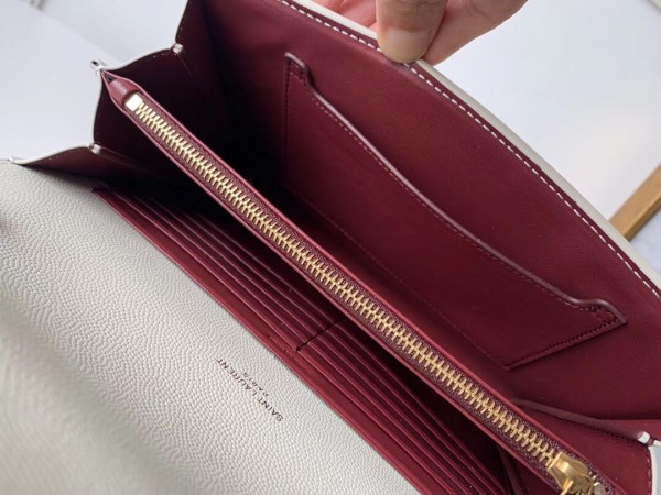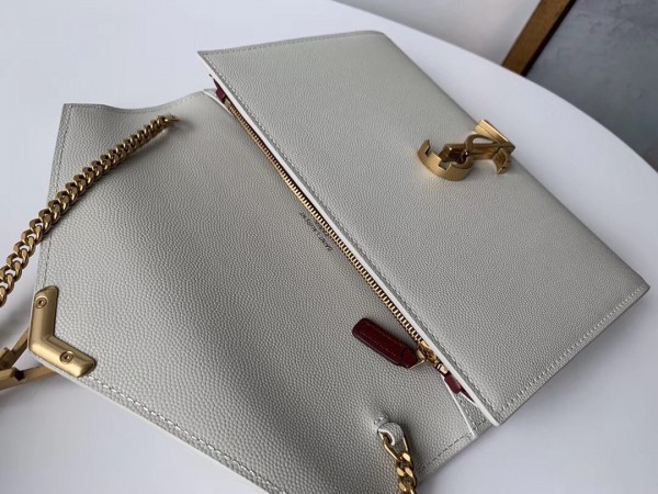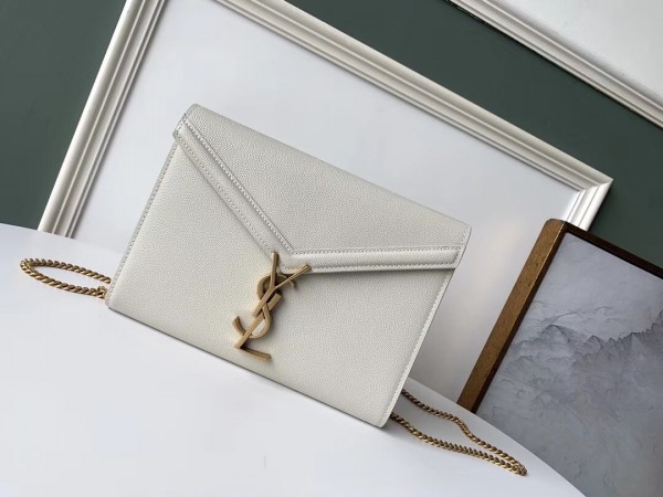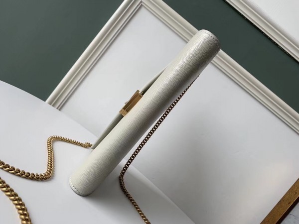 Saint Laurent WOC Cassandra Chain Wallet In White Leather