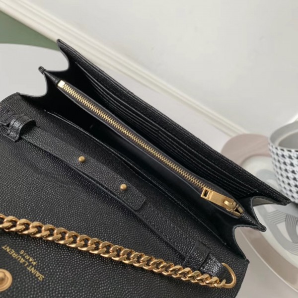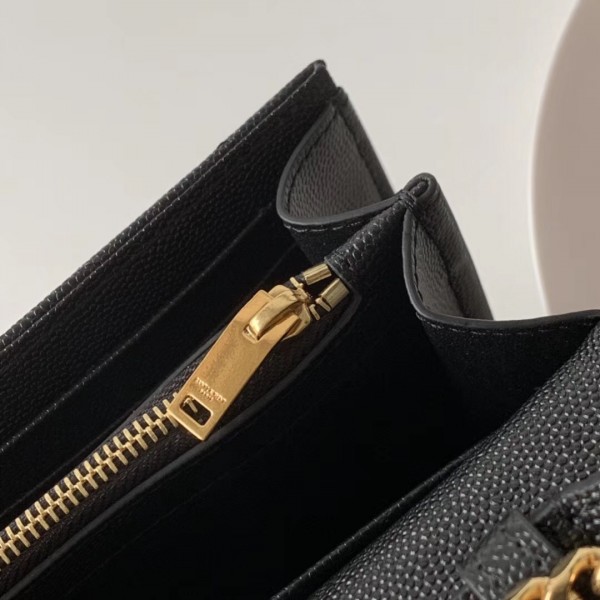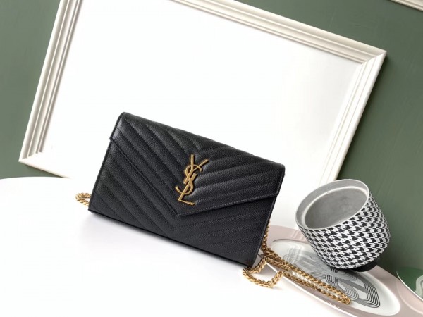 Saint Laurent WOC Monogram Chain Wallet In Black Leather