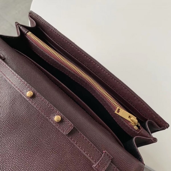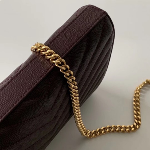 Saint Laurent WOC Monogram Chain Wallet In Bordeaux Leather