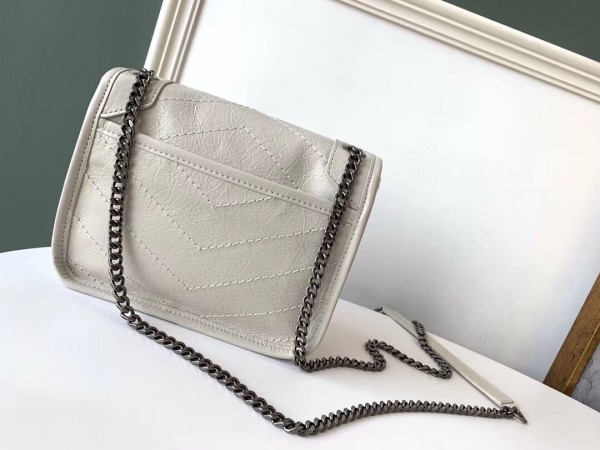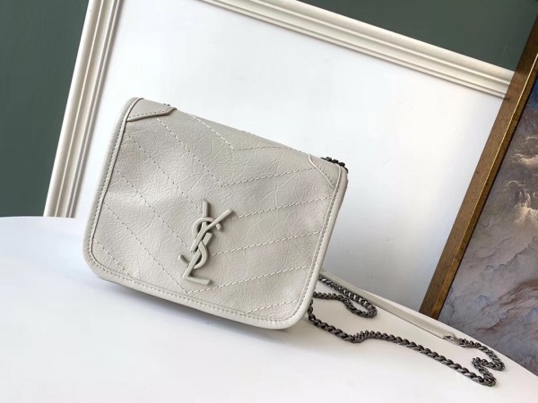 Saint Laurent WOC Niki Chain Wallet In White Crinkled Leather