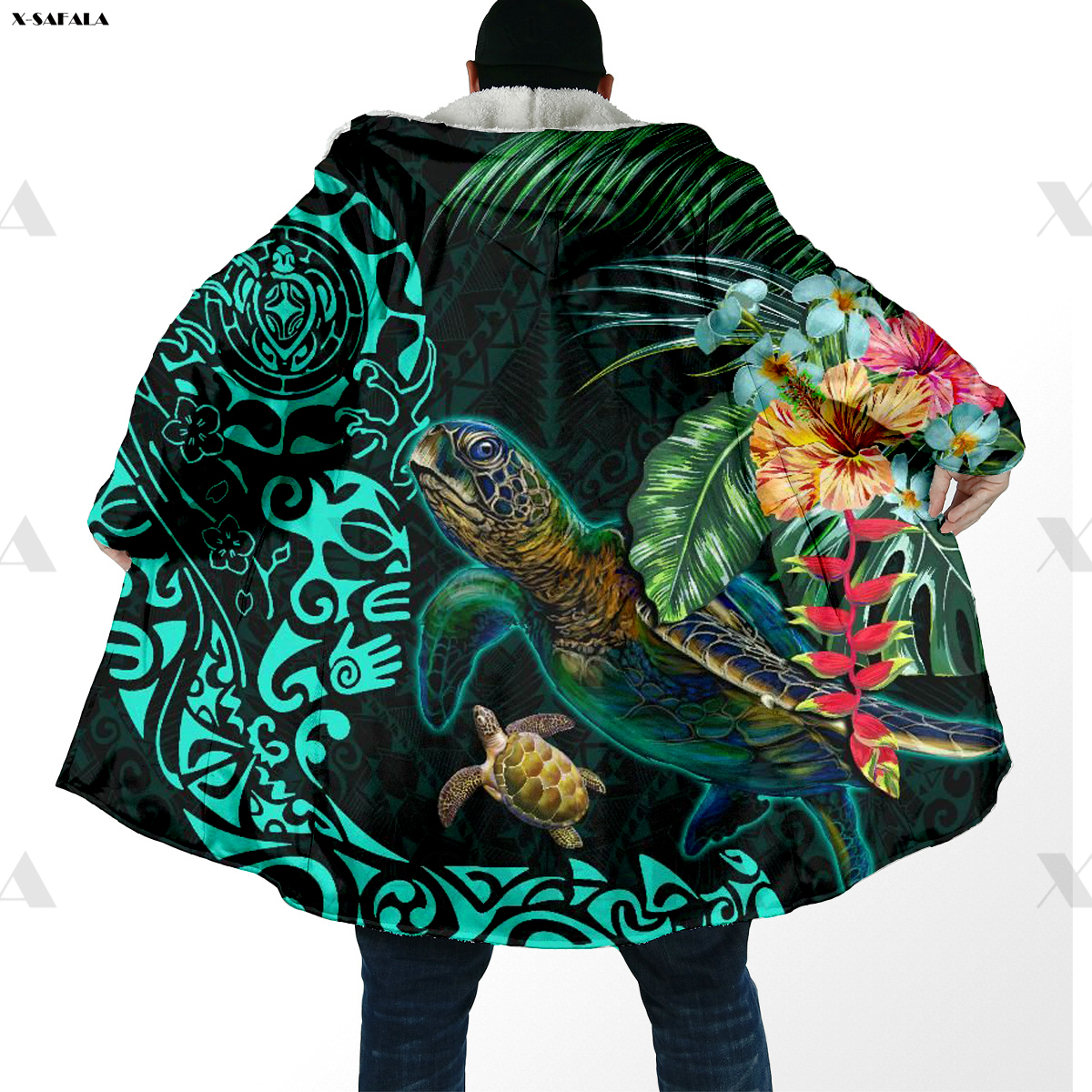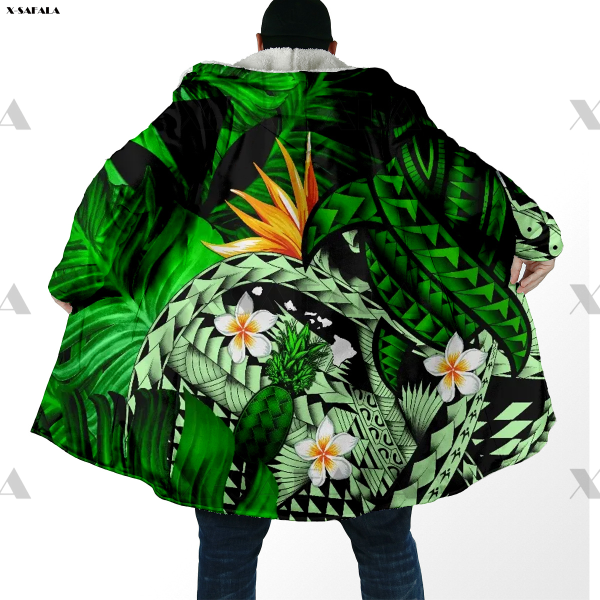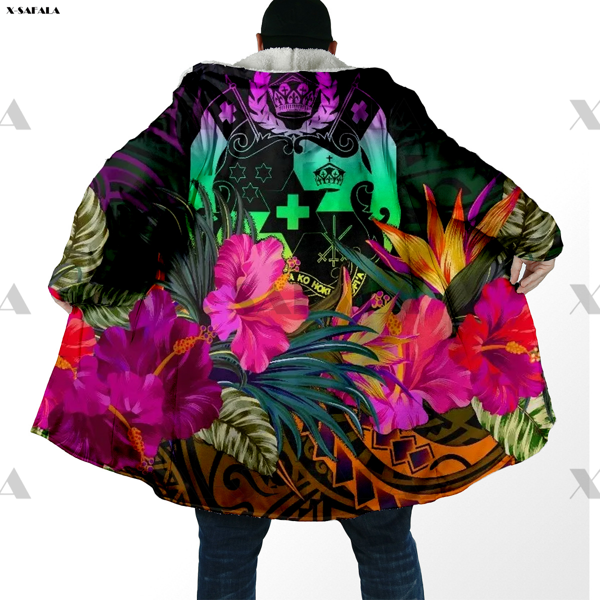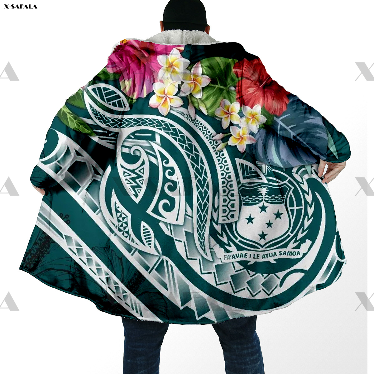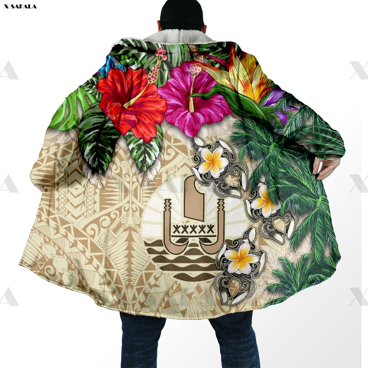 Samoa Polynesian Coconut 3D Printed Hoodie Long Coat Hooded Cloak Thick Down Jacket Outerwear Cotton Pullovers Dunnes