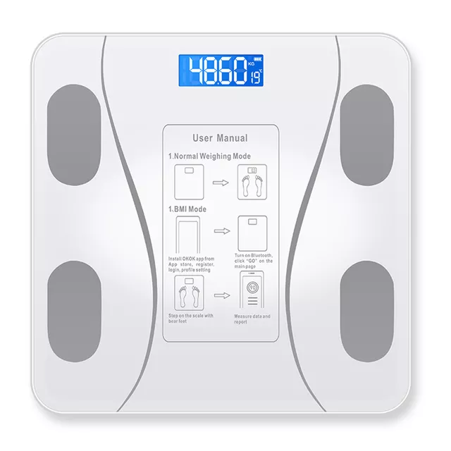 Feature: Measure multiple body data and master all body changes Intelligent sensing, which is called automatic power on and automatic power off R10 anti-collision rounded corners, anti-slip and anti-rollover Sensing indoor temperature, Bluetooth-compatible APP one click connection. Specification: Scale frame material: ABS plastic base Panel material: explosion-proof tempered glass Product size: 260*260*23mm/10.23*10.23*0.9in Display size: 58*23mm/2.3*0.9in Display mode: LCD HD blue screen display Supply method: battery type 2*AAA (not included) Weighing range: 0.2-180kg Display unit: kg/lb/st conversion Sensor: highly sensitive sensor Additional functions: temperature, power display, Bluetooth-compatible function Color: Black, White, Pink Note: Due to the different monitor and light effect, the actual color of the item might be slightly different from the color showed on the pictures. Thank you! Please allow 1-2cm measuring deviation due to manual measurement.