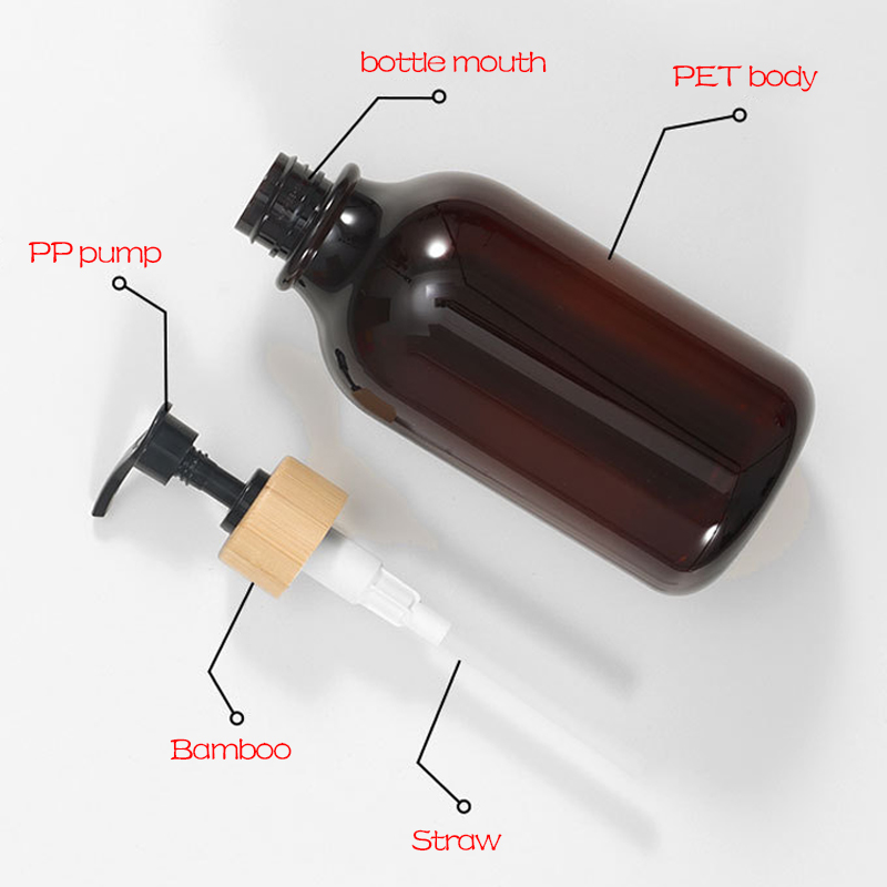 Soap Dispenser Bathroom Shampoo Body Wash Bottles Wood Press Head Liquid Lotion Refill Bottle