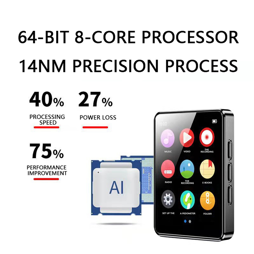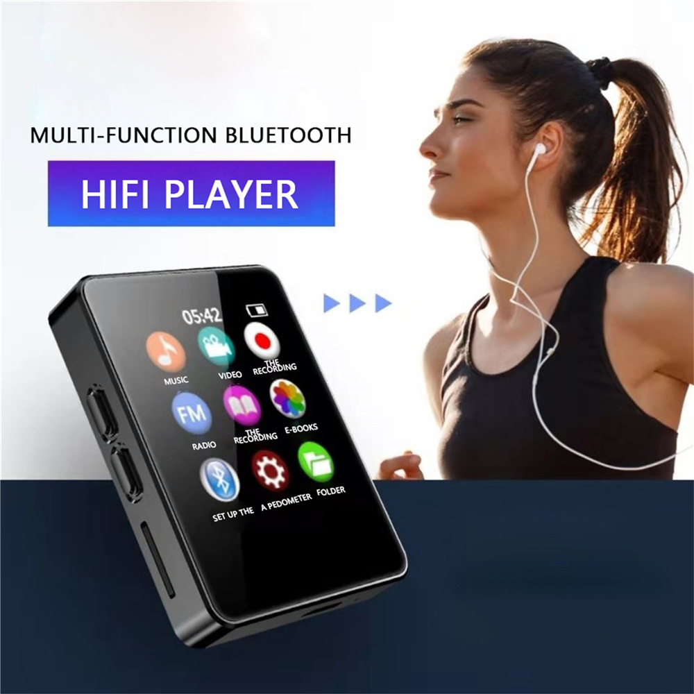 The bluetooth mp3 player has a 1.8 inch screen, mirror finish and zinc alloy design. Lock screen with one click.