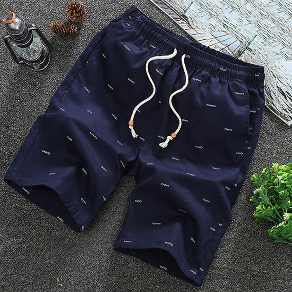 Summer Shorts Men Mid Rise Fish Bone Print Men Shorts Loose Drawstring Pockets Short Pants Bottoms High Shorts