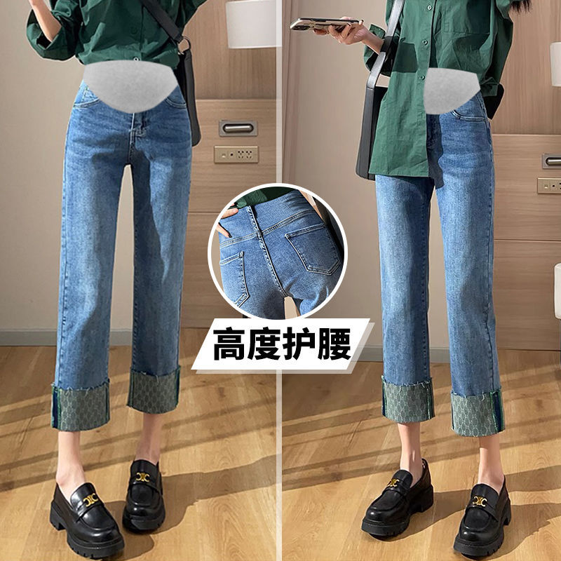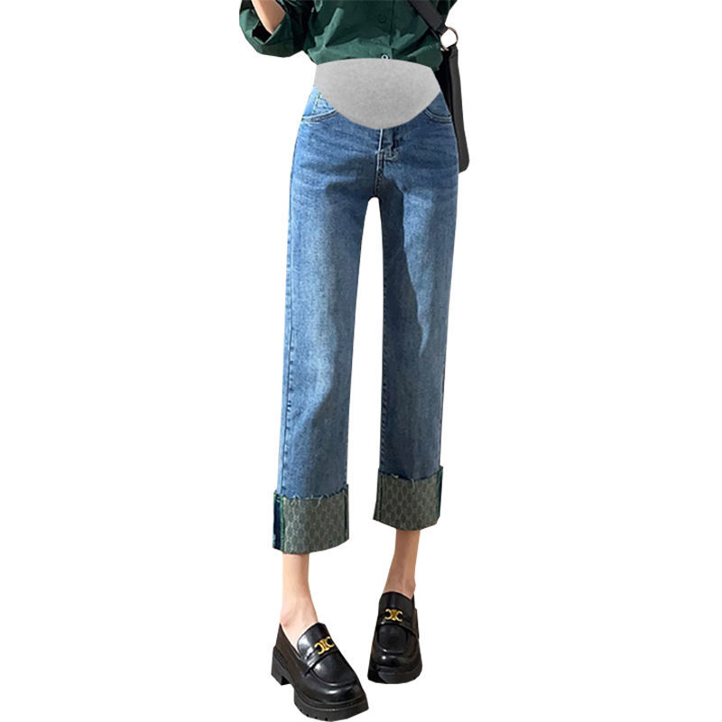 Summer Thin Denim Maternity Straight Jeans Belly Pants Clothes for Pregnant Women Casual Pregnancy Trousers Autumn Spring Wear