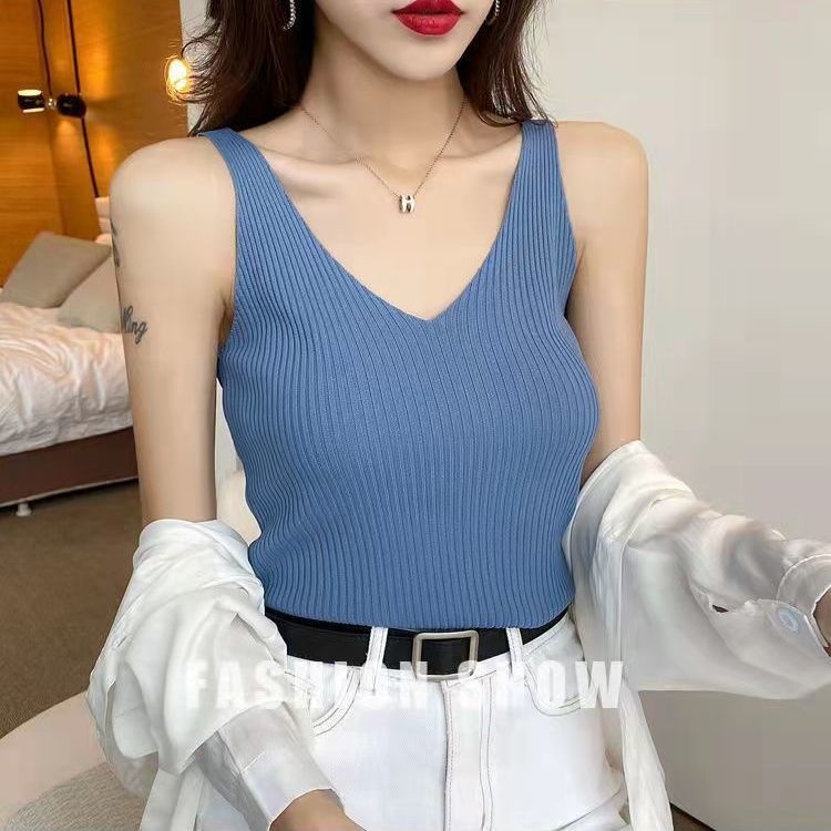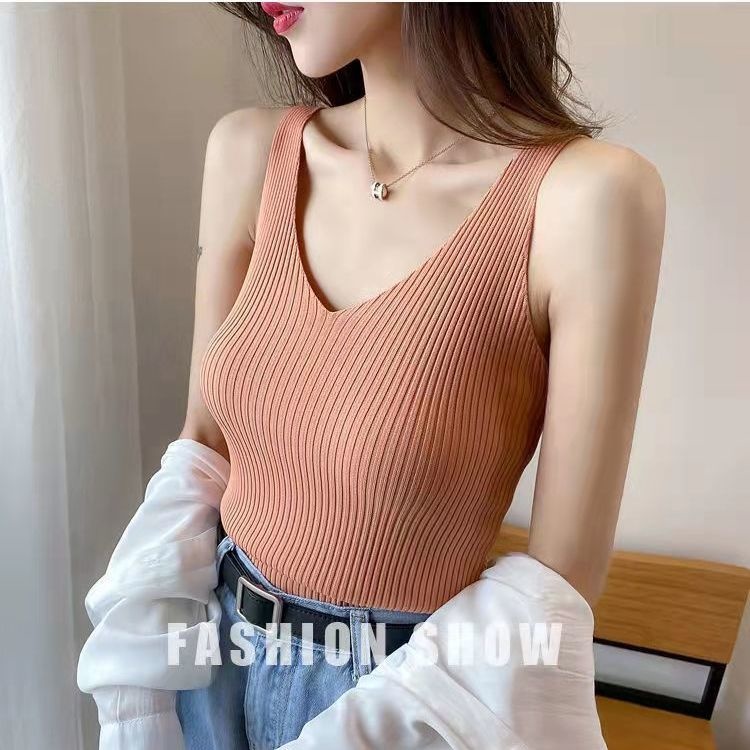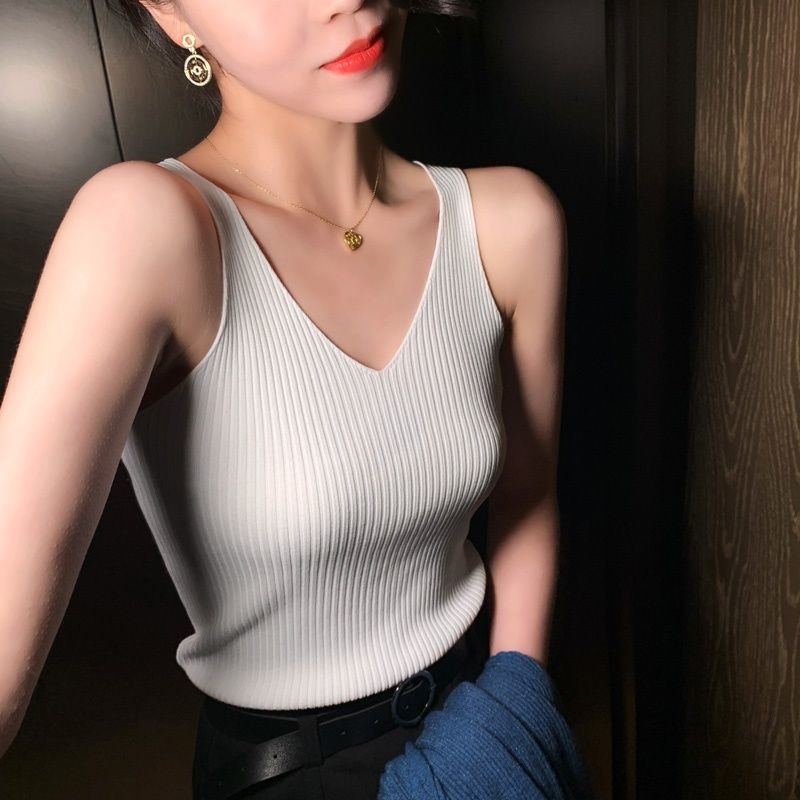 Summer V-neck Ice Silk Suspender Vest Women Inner And Outer Knitted Bottomed Shirt Top