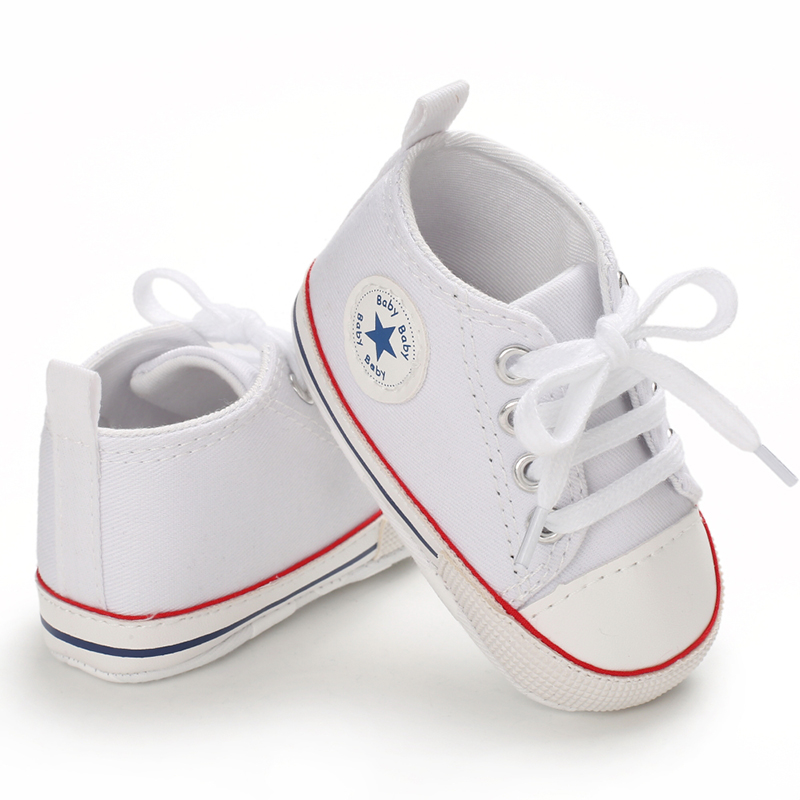 · FASHION : Classic star high top ankle style,Fashion and Casual Lace up sneakers,it's popular with your child.Cute style suit for indoor walking,crawling,playing ect.Best shower birthday gift for newborn.
