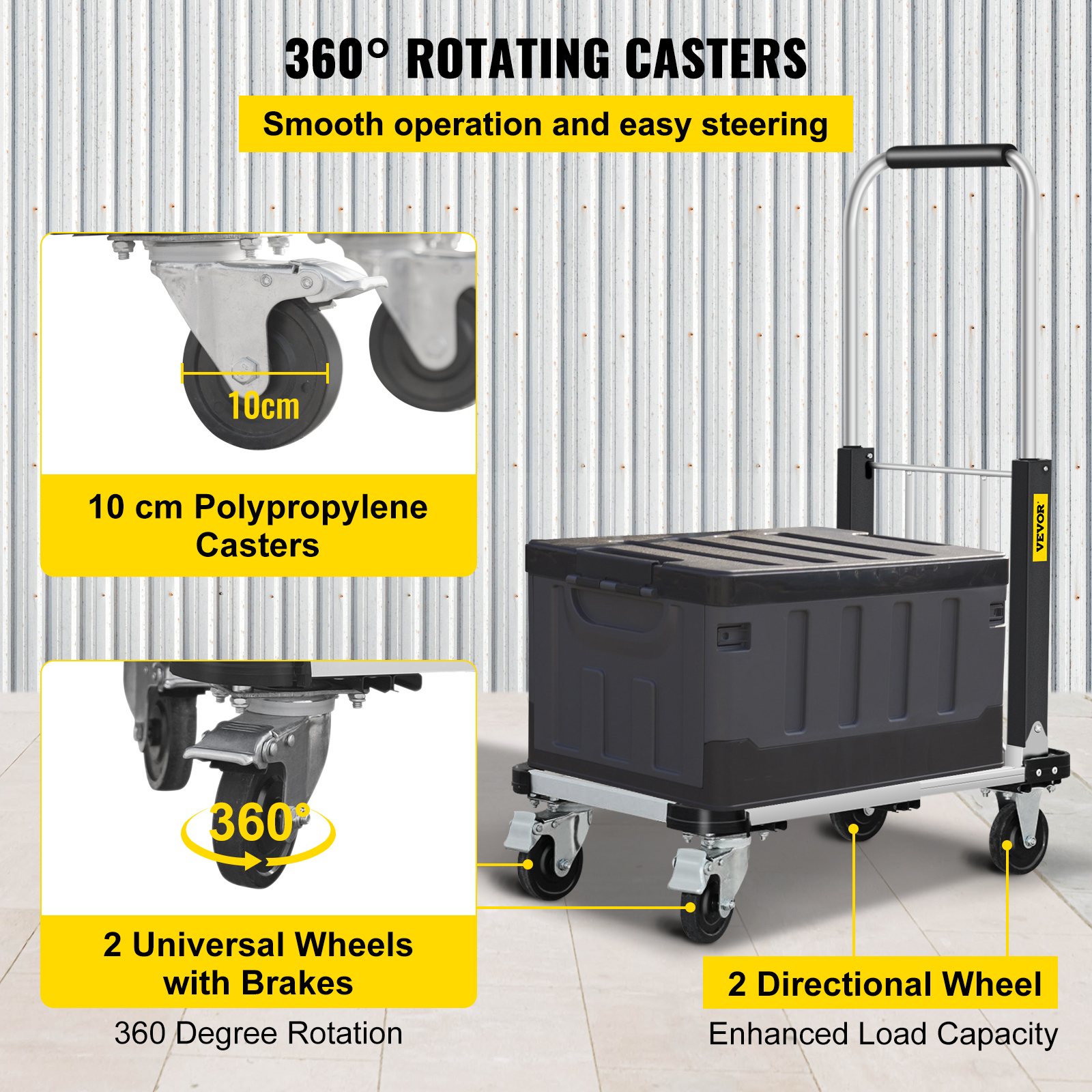 VEVOR Folding Hand Truck Dolly Cart with Wheels Luggage Trolley 330lb Capacity Solid Construction Aluminum Alloy Flatform Dolly