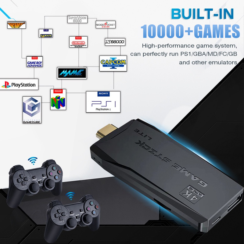 Multiple emulator formats: ps1/atari/mame/sfc/fc/gba/gb/gbc/md supports emulators. With dual wireless gamepads, the icing on the cake.