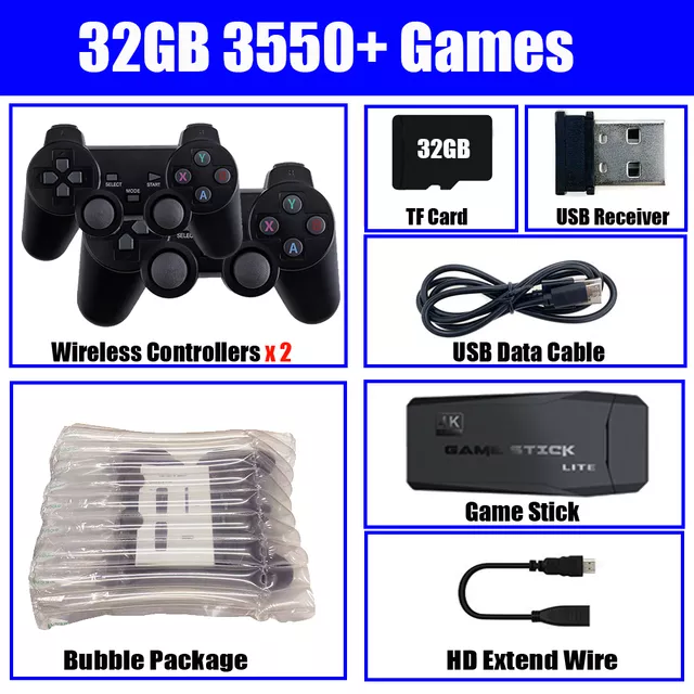 Plug and Play, Games are Preload in the game console,32GB with 3550 games, 64GB with 10000 games