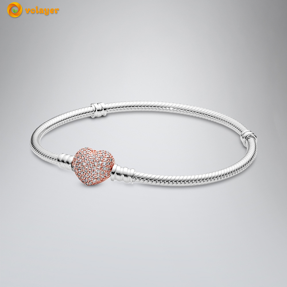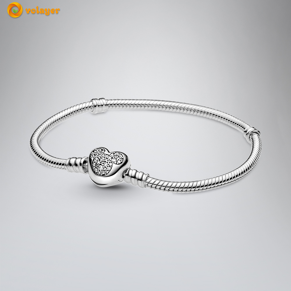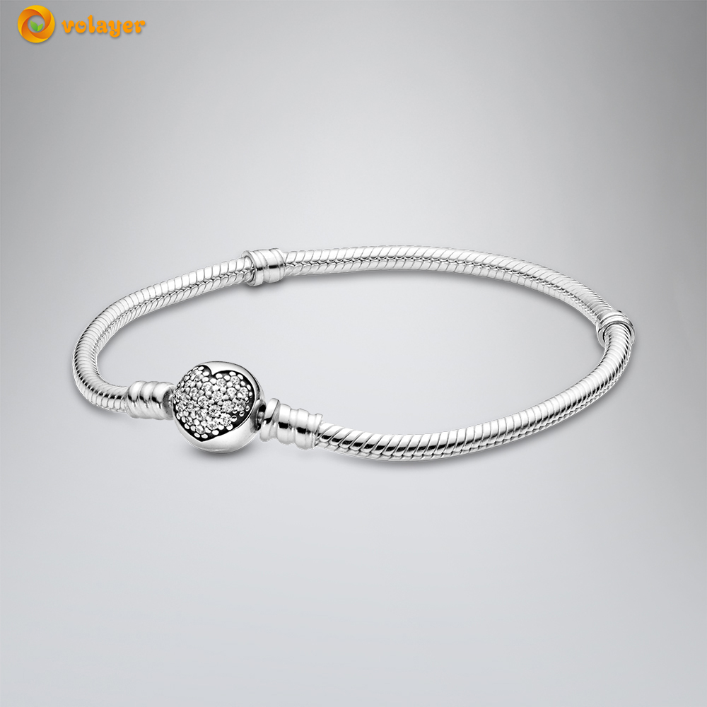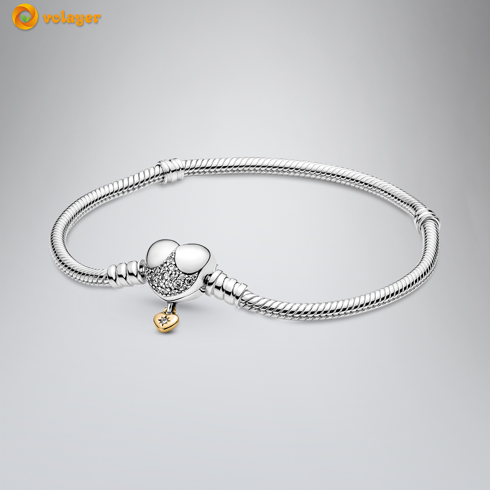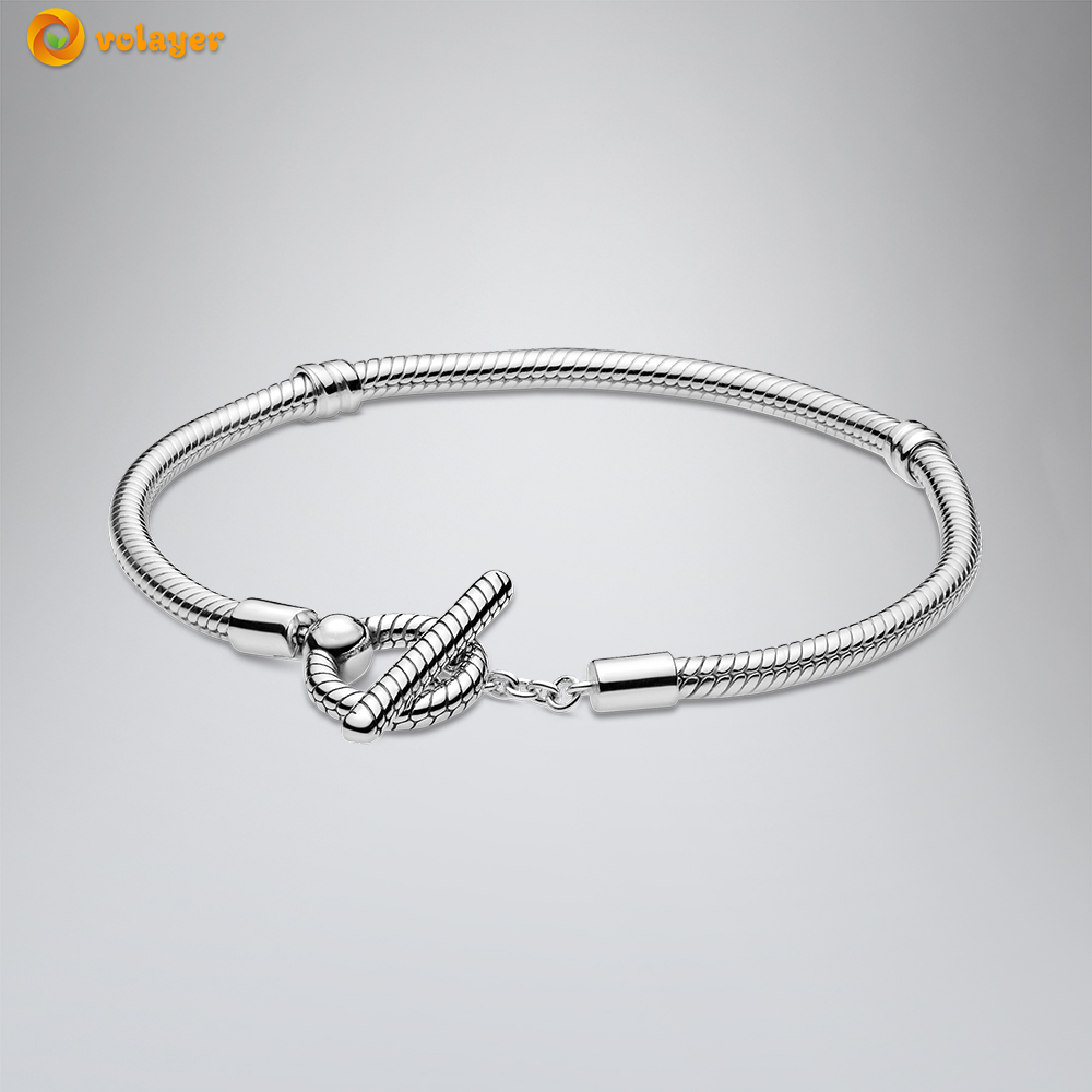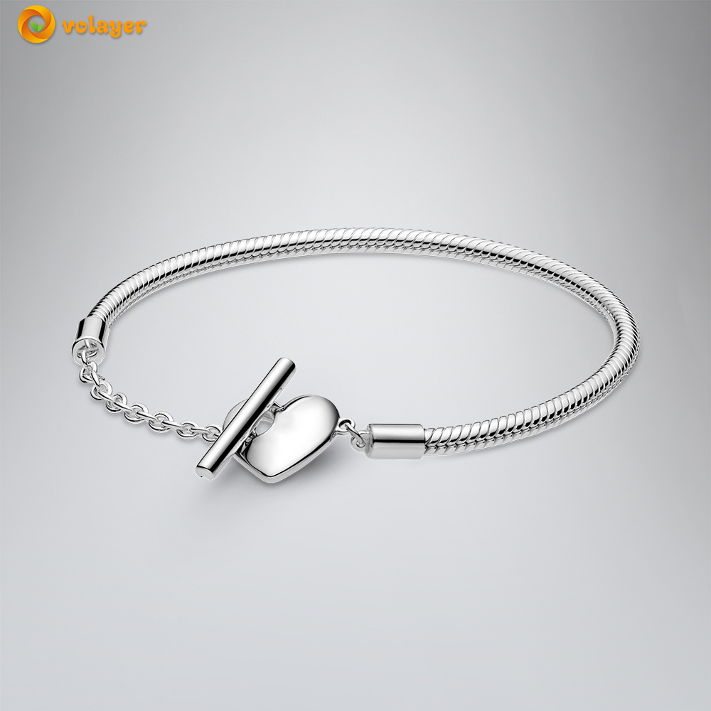 Volayer 925 Sterling Silver Bracelets Butterfly Clasp T-bar Heart Moments Beads & Pavé Snake Chain Bracelets Friendship Bangles