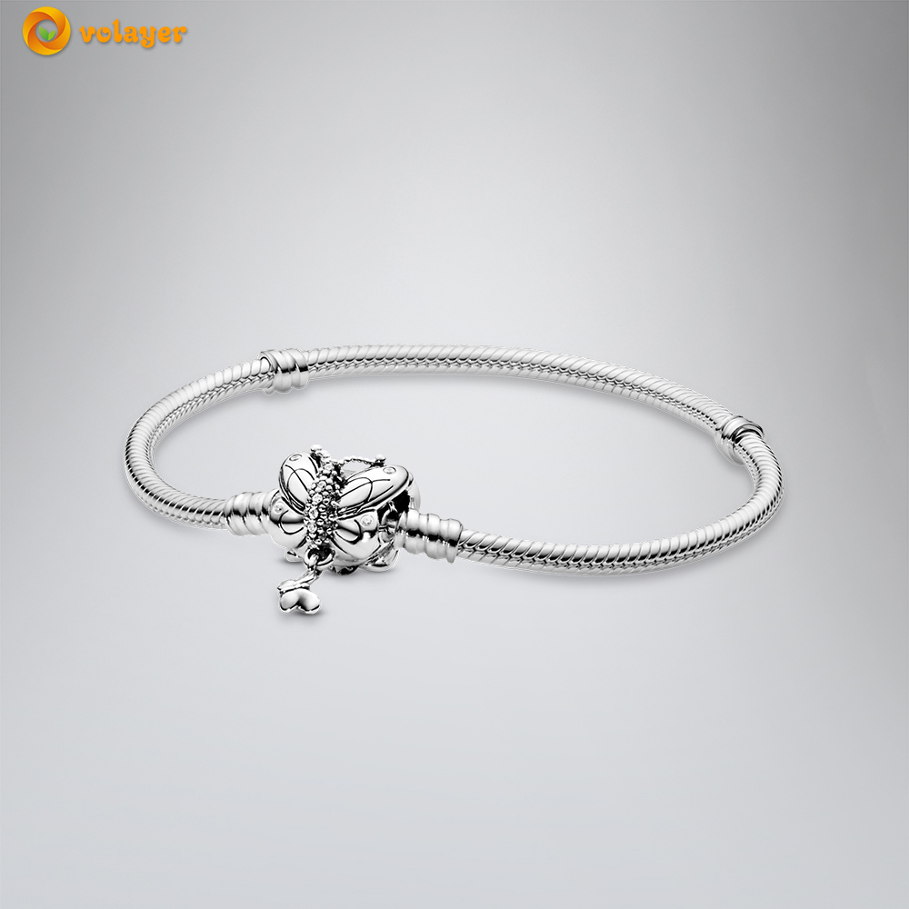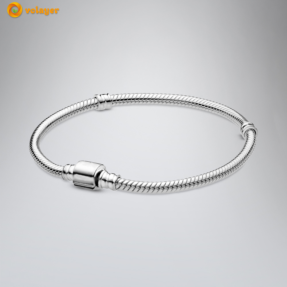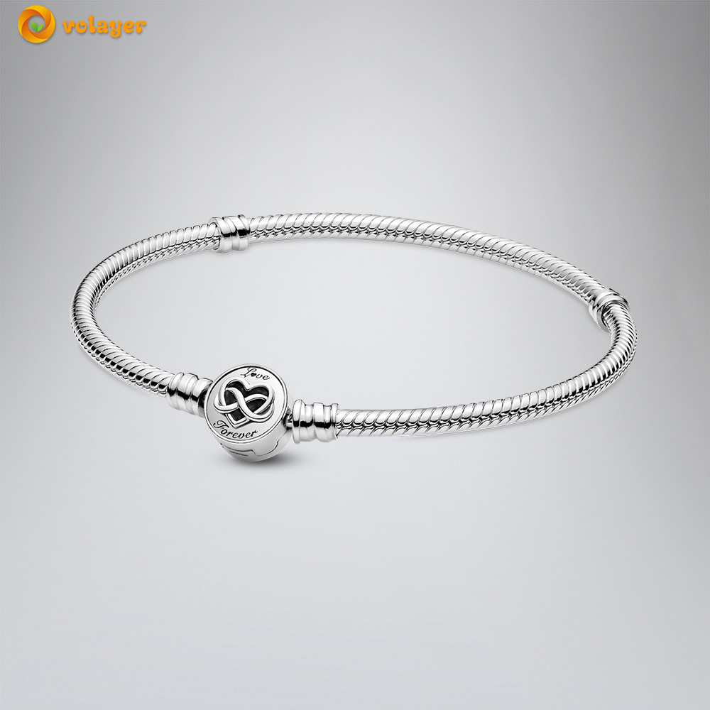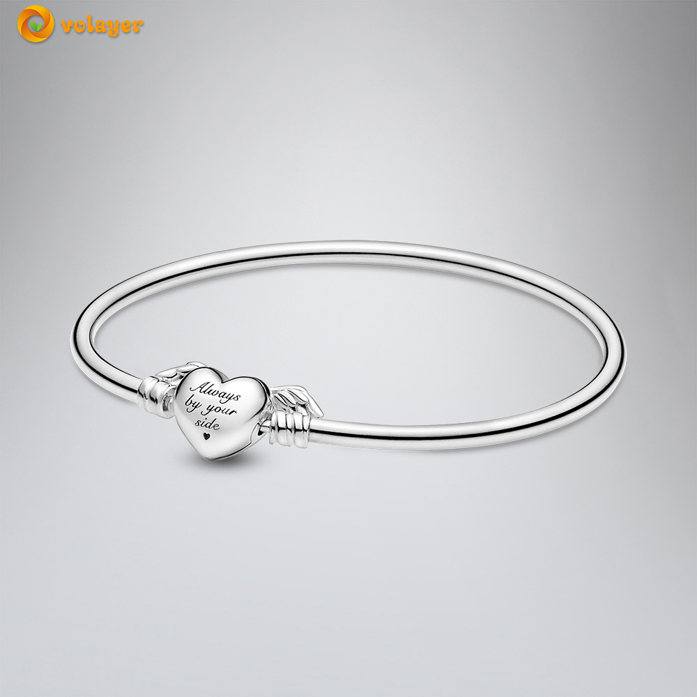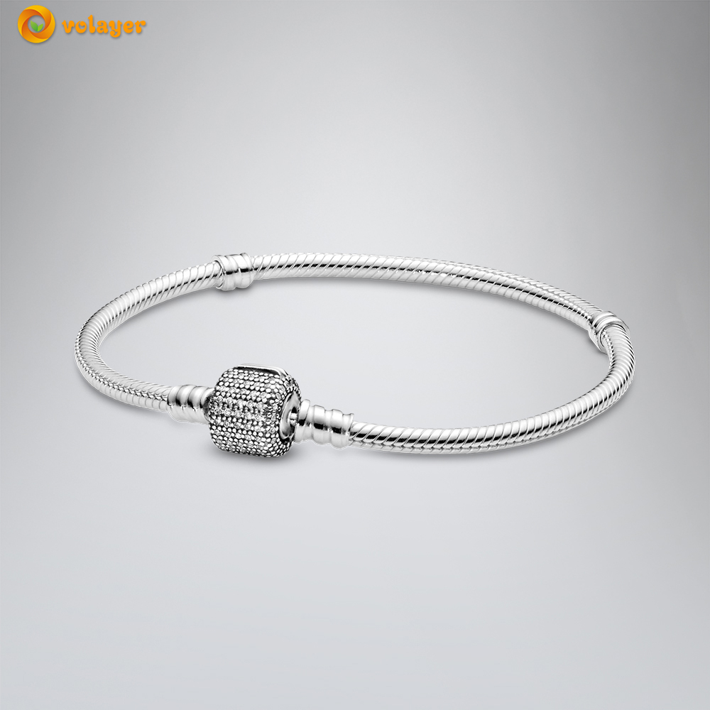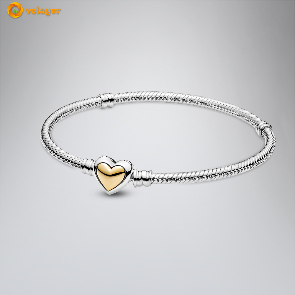 Volayer 925 Sterling Silver Bracelets Butterfly Clasp T-bar Heart Moments Beads & Pavé Snake Chain Bracelets Friendship Bangles